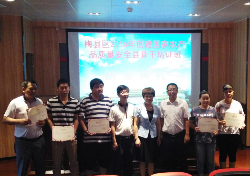 为进一步推进梅县区创建国家农产品质量安全县工作,提高梅县区、镇、村等农产品质量安全监管人员的综合监管能力,增强农产品生产经营企业的主体责任意识,我校与梅县区农业局于暑期联合举办“梅县区创建国家农产品质量安全县骨干培训班”。参加培训学员有区农产品质量安全监管、执法、检测人员、乡镇检测员和村级协管员骨干、农产品生产经营企业代表等共52人。