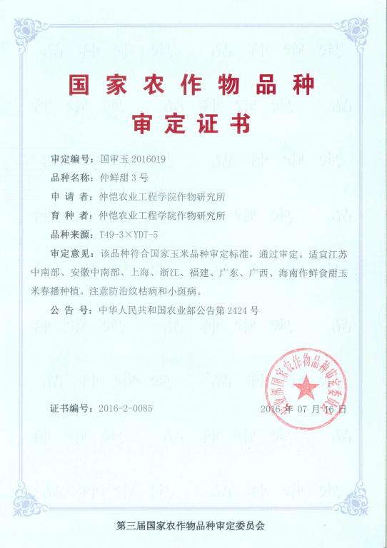 近日, 我校选育的“仲鲜甜3号”甜玉米通过国家审定,这是我校通过国家审定的第一个甜玉米新品种。据悉,该品种是由王晓明教授主持选育的高产、优质、超甜、多抗型甜玉米新品种,先后于2013年通过云南省品种审定,2014年通过广东省品种审定;而且该品种于2013年被评选为全国十佳甜玉米品种,2014年第十届全国鲜食玉米暨速冻果蔬产业大会被推选为甜玉米市场畅销品种。这一成果是我校甜玉米育种取得的又一个新突破。