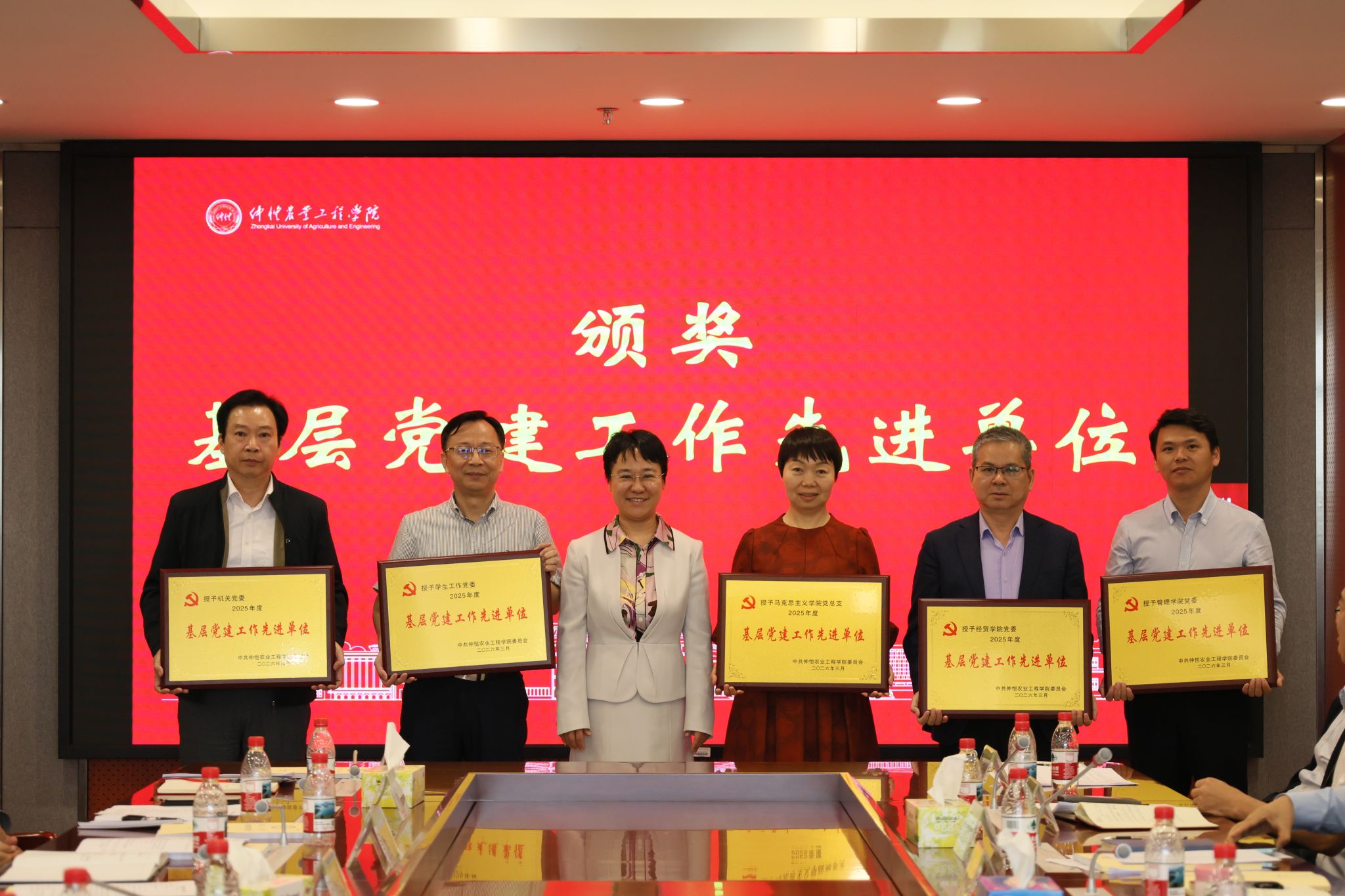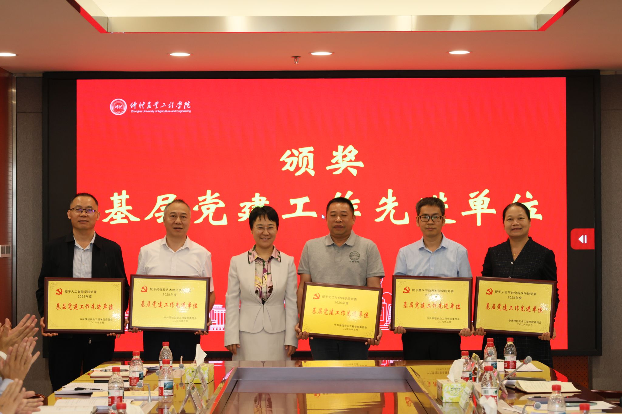 廖明宣读了《关于公布2025年度基层党建工作考核结果的通知》,翟雪梅为2025年度基层党建工作先进单位颁奖。组织部、学生工作党委、马克思主义学院党总支、何香凝艺术设计学院党委、数学与数据科学学院党委负责人汇报了2026年重点工作。