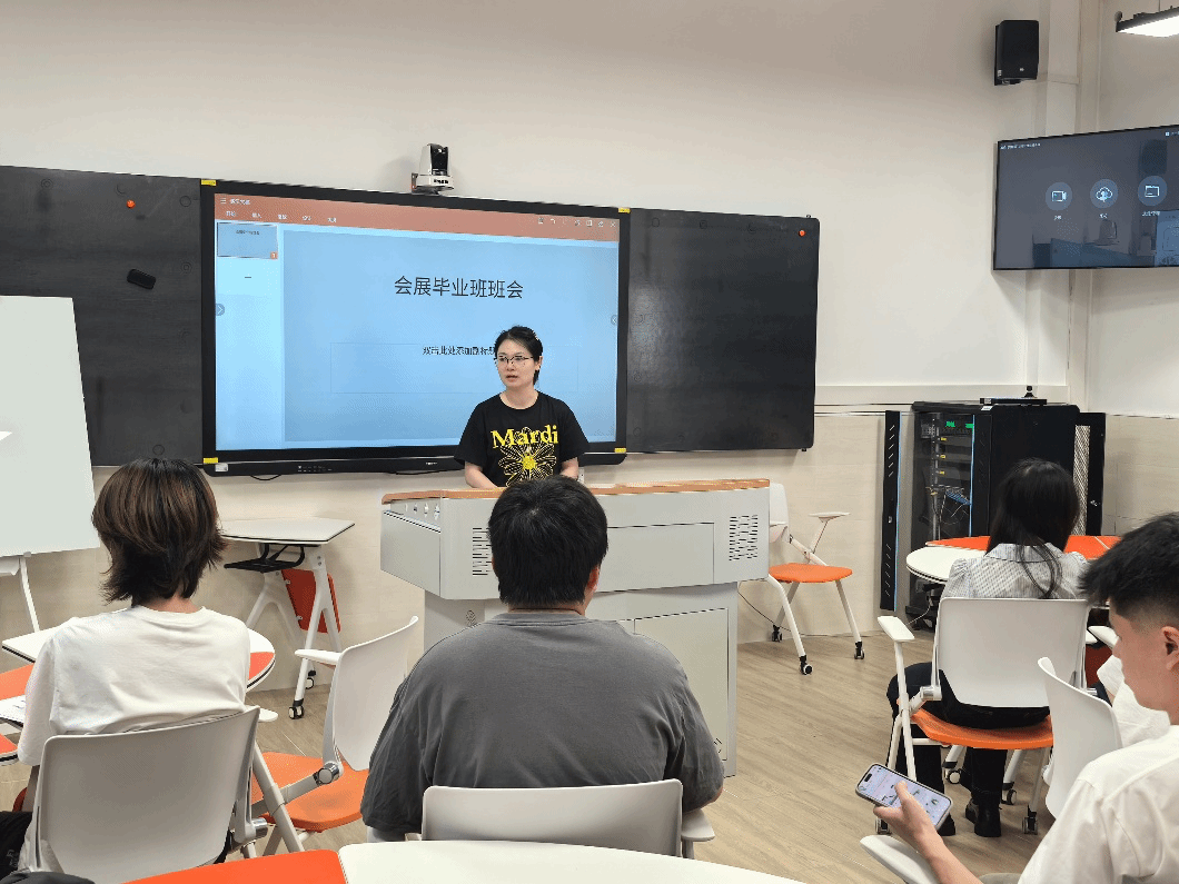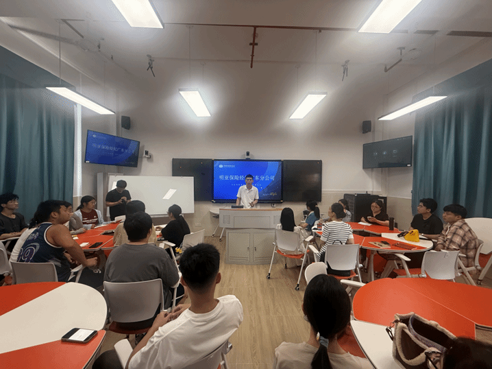 为助力会展专业毕业生更好地规划职业方向,明确就业目标,5月13日下午,经贸学院副院长张眉特邀学院优秀校友、明亚保险经纪李绪浩先生,为毕业班同学开展了一场就业辅导活动。此次活动由辅导员黎静主持,会展213-214 班全体毕业生积极参与,现场氛围热烈。