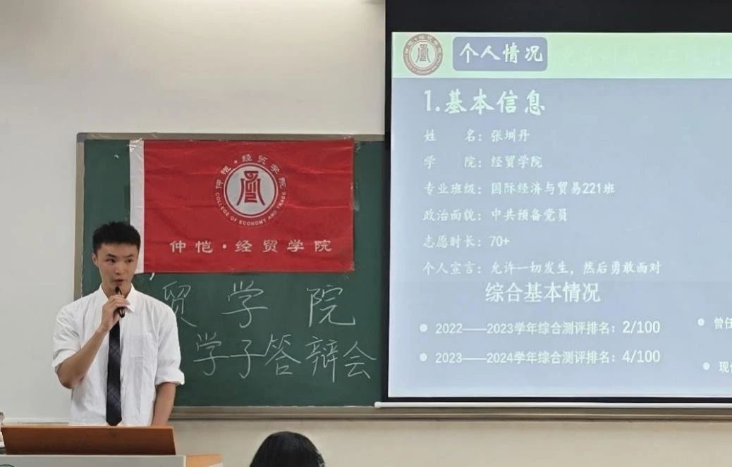 为激励经贸学院学子在学业与实践中不断突破、勇攀高峰,挖掘各领域卓越学子,引领全院形成积极向上、奋勇争先的良好氛围,学院于5月8日下午在教学楼①608室举办经贸学院2025年“百名优秀学子”评选答辩会。