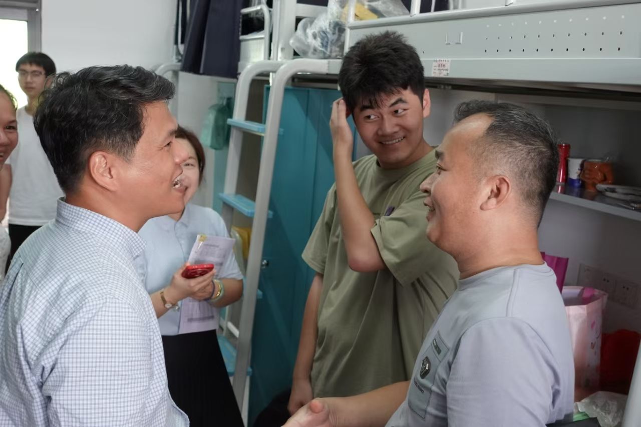 为深入了解新生的入学情况,帮助新生快速融入大学生活,9月7日,管理学院党委书记柯锦泉、党委副书记郭肖明、副院长程硕、副院长黄颖,带领2025级新生辅导员及班主任深入走访新生宿舍,以面对面交流传递学院温度,加深学院与新生的联系。