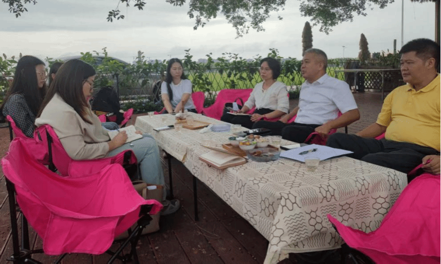 访谈结束后,调研组在村委工作人员陪同下实地走访丹邱村与新河村,参观了村容村貌、农田基础设施与人居环境整治等情况,并与村民代表就生产生活现状、乡村治理参与及未来发展期望进行面对面交流。调研尾声,团队转赴广州市增城区能记农场举行专题座谈,与增城区农业农村局副局长何灼庚、朱村街农办主任夏奇峰等政府工作人员进行深入交流,进一步梳理了朱村街道在“十五五”期间的功能定位、产业融合路径、集体经济发展等关键议题。