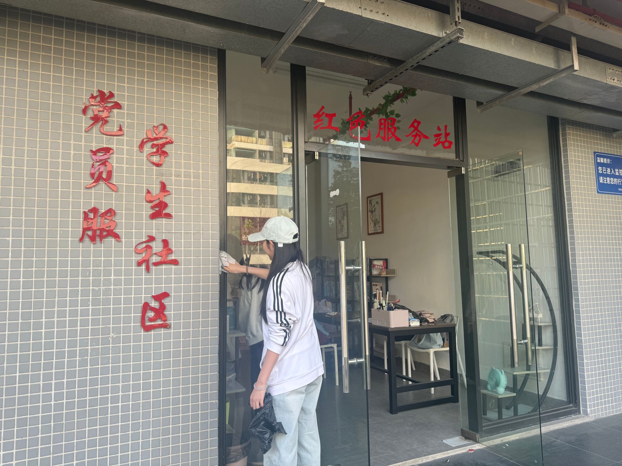 随后,支部党员同志分为三组,对学生社区党员服务站进行了日常维护。党员们清理角落杂物、擦拭门窗桌椅、整理摆放书籍,团结协作,发扬“不怕苦、不怕累、不怕脏”的奉献精神,用双手打造整洁有序的服务阵地,以实际行动践行新时代党员的责任与担当,让雷锋精神在实践中落地生根。