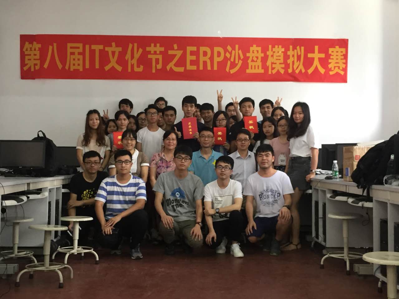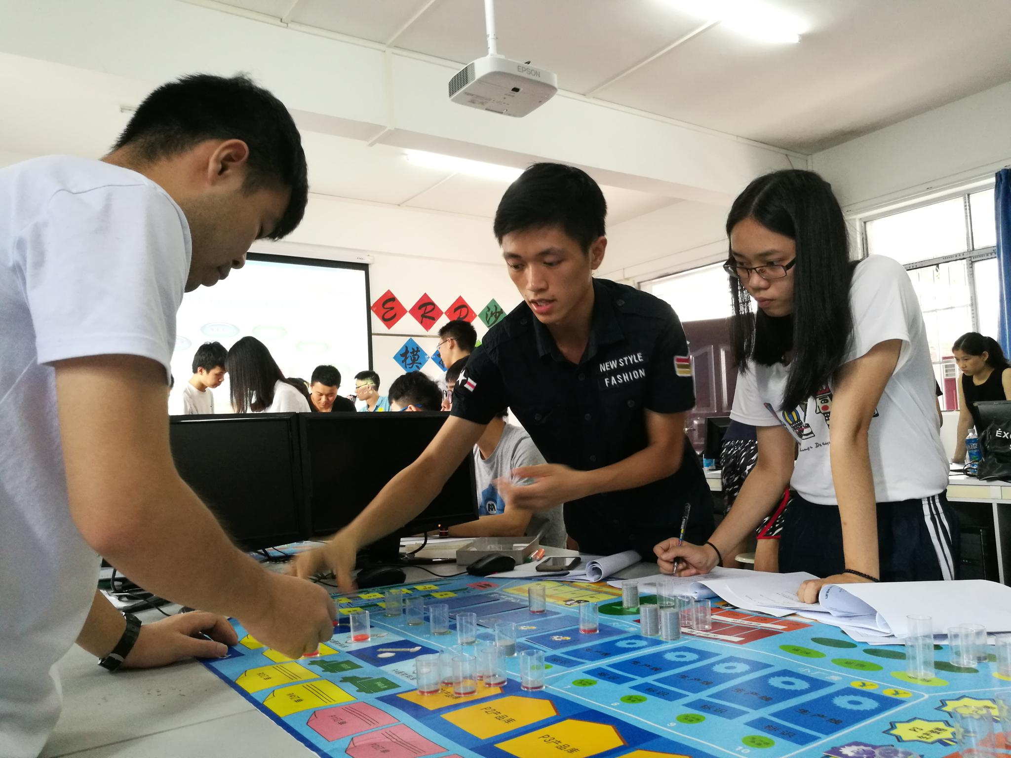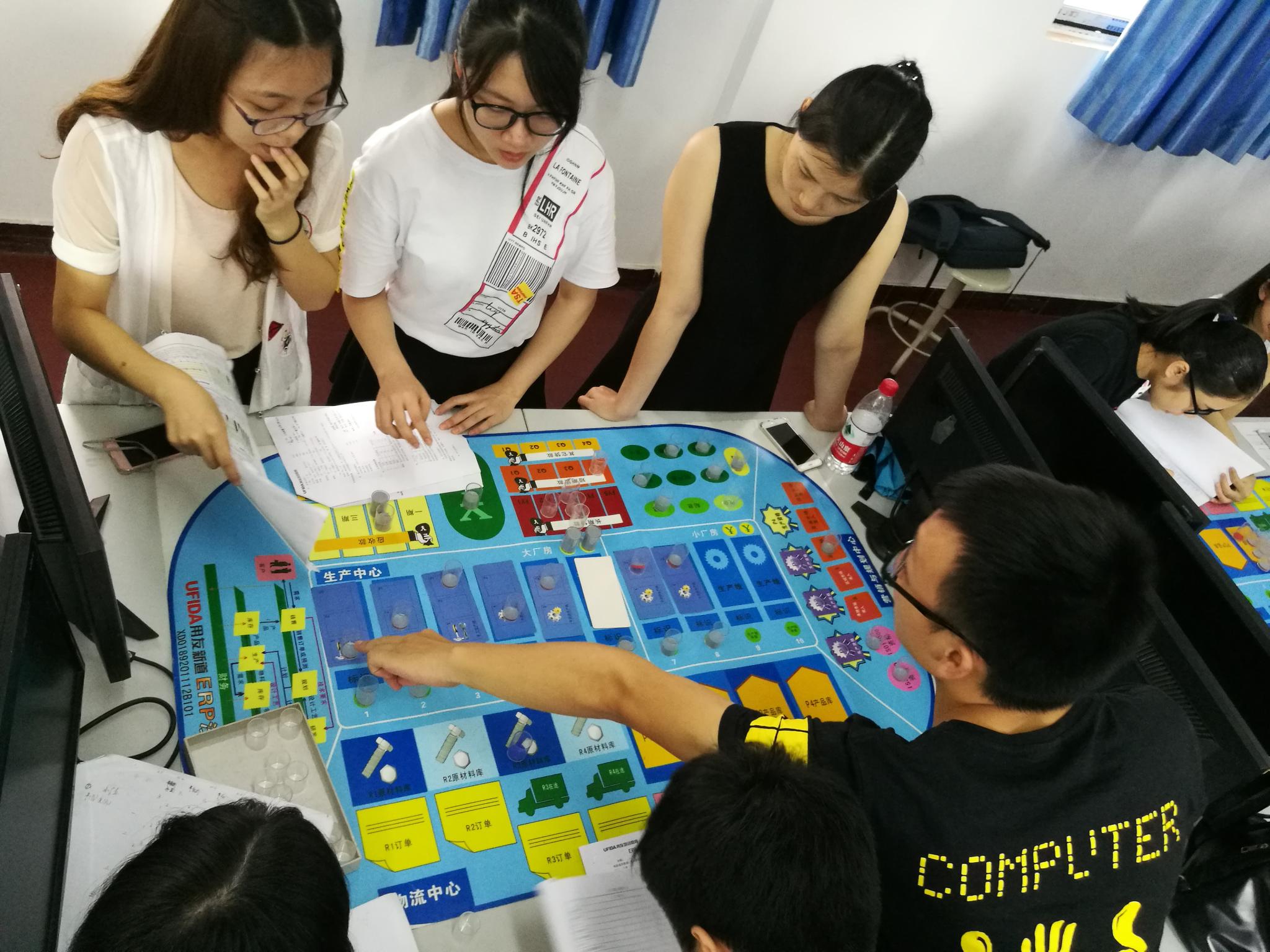 6月10日上午,第八届IT文化节子项目之沙盘模拟大赛决赛在英东楼618室打响。进入此次决赛的一共有5支队伍,比赛选手通过沙盘模具模拟企业的经营。信息科学与技术学院党总支副书记李宝菊、大赛指导老师黄灏然、辅导员吉晓娟和吴南生出席了本次比赛。