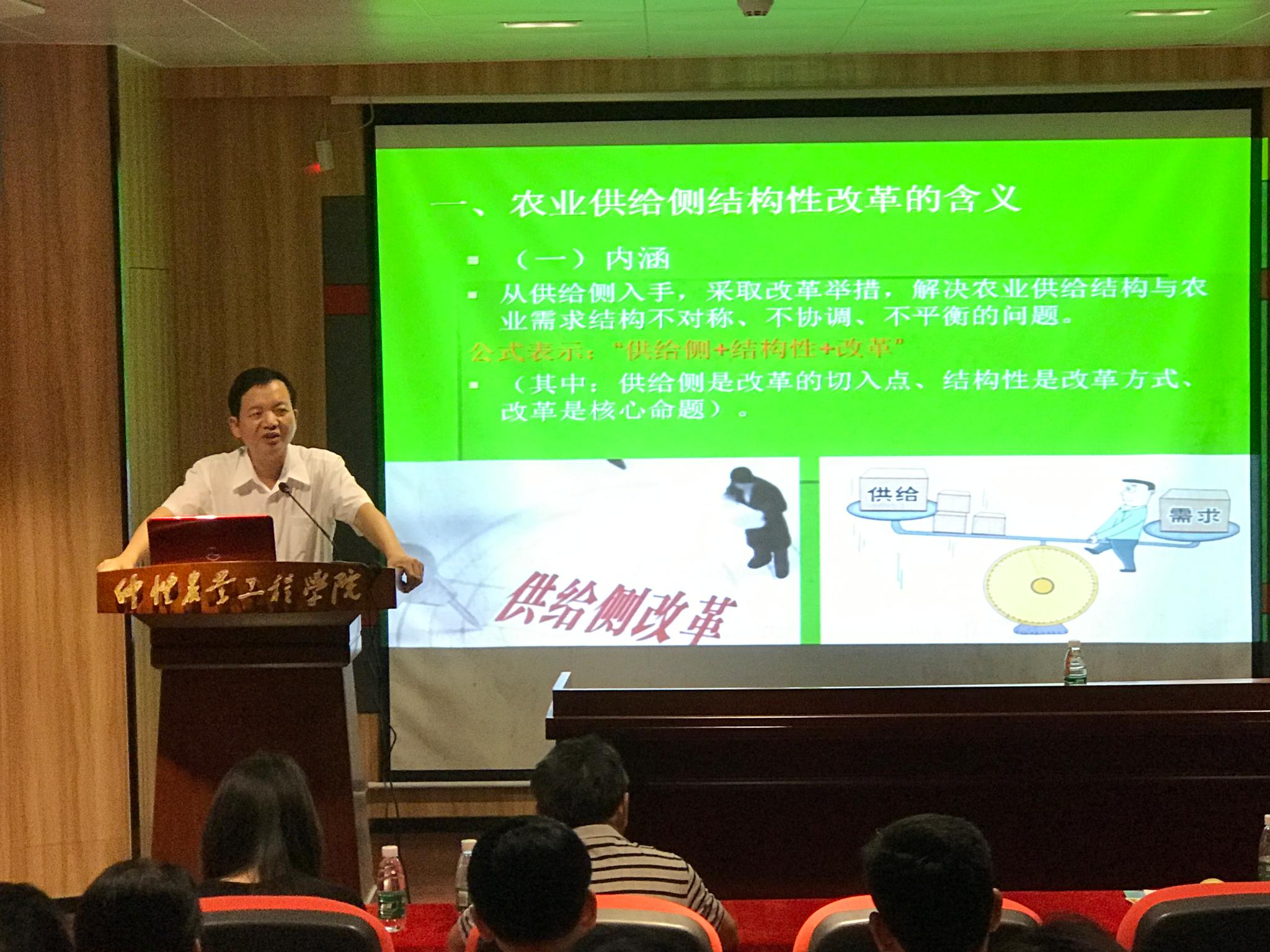 会上,曾学龙教授作了学习习近平总书记对广东工作重要批示精神的辅导报告,他主要从“习近平总书记重要批示的背景与意义”、“如何理解四个坚持、三个支撑、两个前列”等方面来讲解。副校长、工会主席瞿志印研究员作了题为《关于农业供给侧结构性改革的几点认识与思考》辅导报告,他从农业供给侧结构性改革的含义、起因、内容、措施和注重解决的若干问题等方面进行阐述。随后,参会人员参加了定向越野、气排球和混合接力等素质拓展培训。