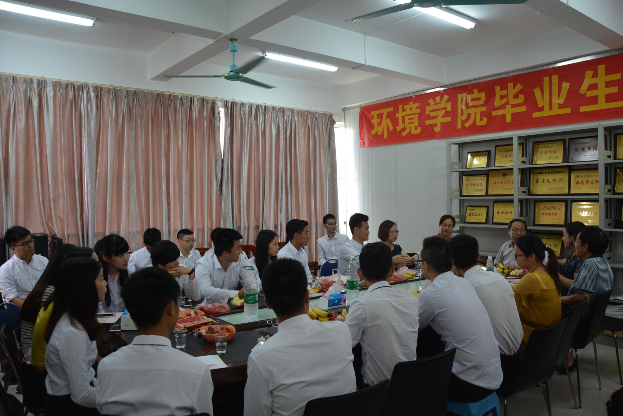 最后,杜建军进行总结发言,他对学院举办此次毕业生座谈会表示肯定,同时也对广大毕业生提出了要求,他希望大家在今后的工作中要以诚信、勤奋、自信、务实为准则,专业没有好坏,目前国家环保行业发展迅速,大家要抓住机会,脚踏实地,合理规划,一步步走好自己的人生之路。也强调母校永远是大家的后盾,期待校友们五年十年后回校再聚。