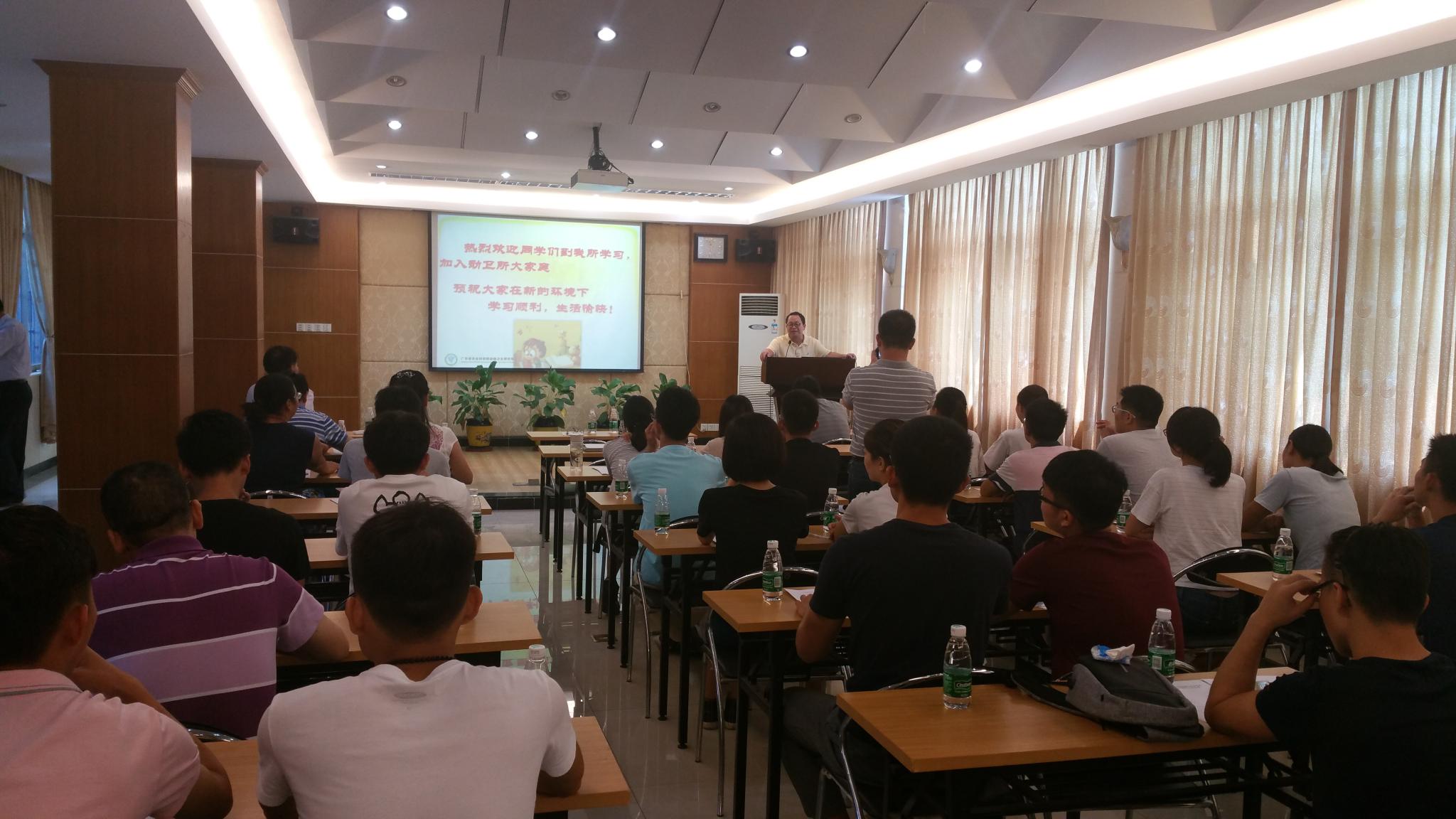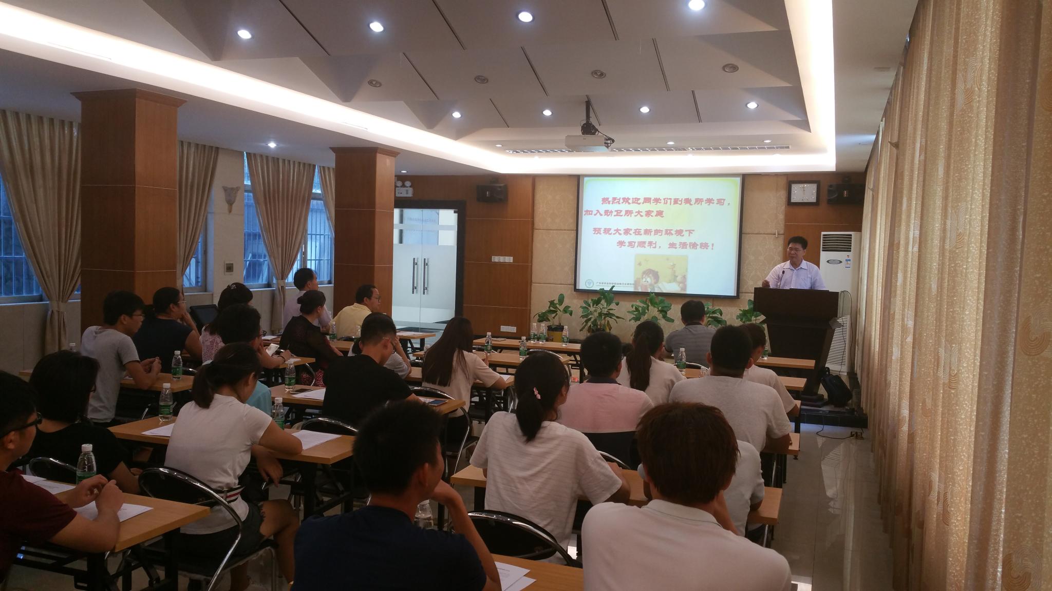 康桦华主任介绍了动物卫生研究所的主要组织结构和规章制度,希望同学们尽快适应新环境,遵守所里的规章制度、安全规范、管理条例,争取获得丰硕的教学和实习成果。