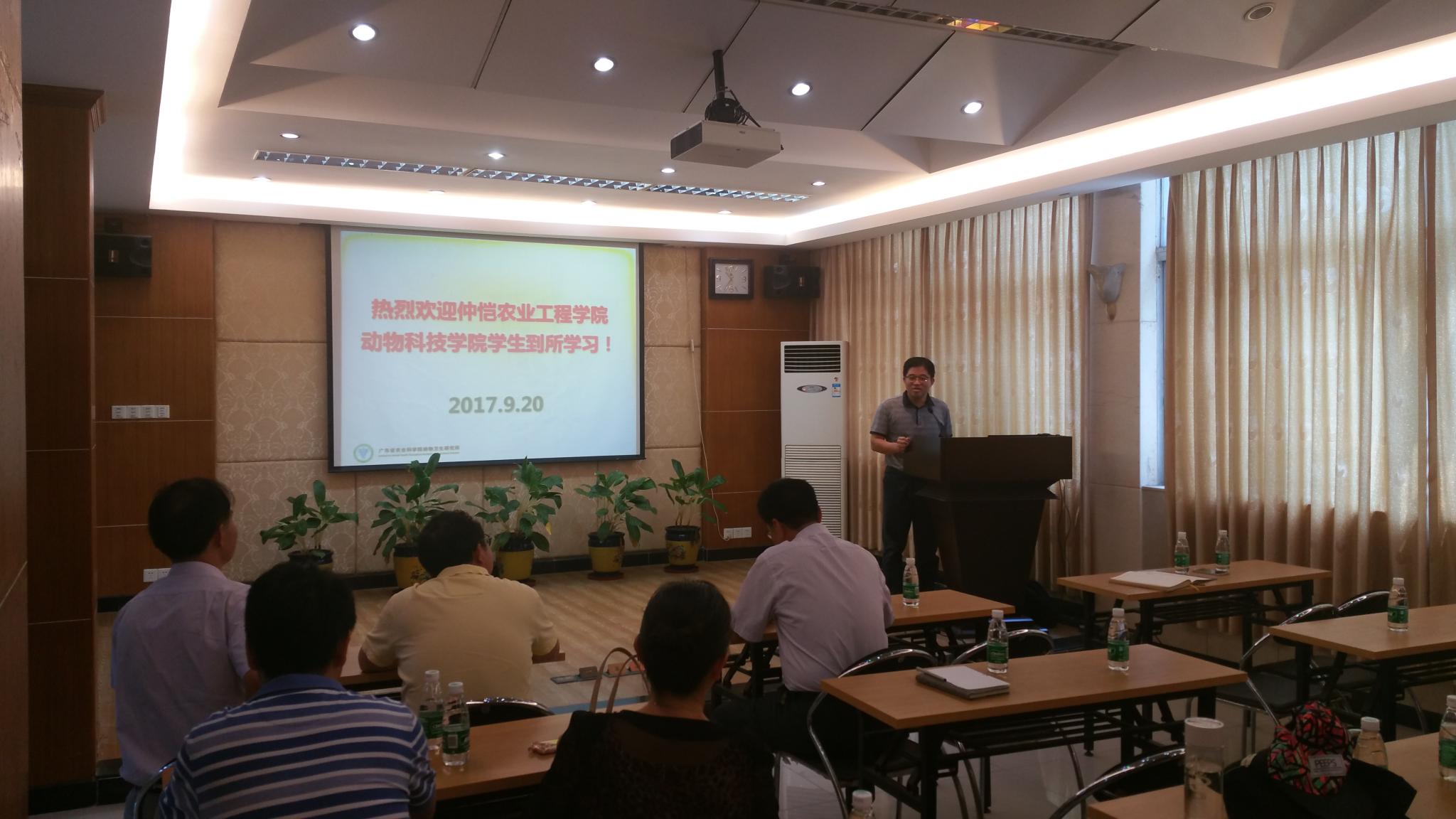 9月20日,动物科技学院动物科学专业2014级的23名学生,在院党总支书记欧坚泉、院长林蠡的带领下,从白云校区来到广东省农业科学院动物卫生研究所,开始为期一年的教学实习生活。这是动科院实施“3+1”人才培养模式改革中,到试点单位开展“1”年实践学习的第一批学生。