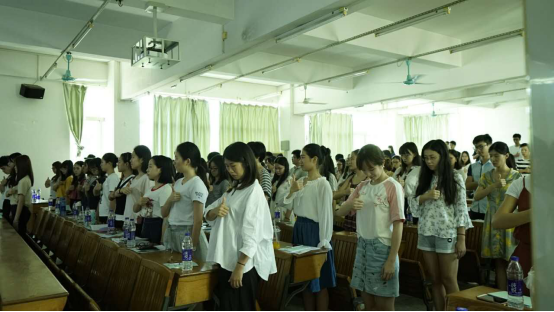 培训内容共分为三个部分,第一部分由李泽阳老师从开展志愿精神与志愿服务礼仪规范培训做了授课。第二部分由胡汉弟先生重点培训了志愿者们的礼宾接待能力。第三部分由韩德杰先生讲解了开幕式当天的人员安排与相关注意事项。