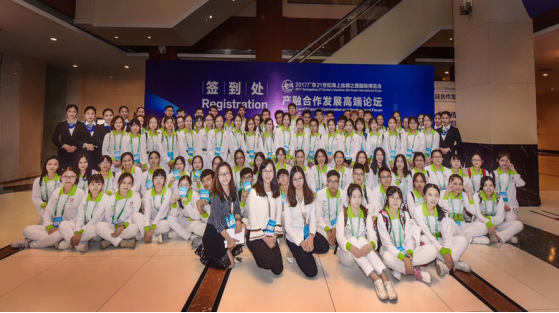 经贸学院会展系90名学子有幸参加了此次高端论坛和海丝博览会志愿者活动,见证了这次盛大的论坛和博览会,并在志愿者活动中受益匪浅。90名同学分配到礼仪组、安保组、会务组等十一个小组中,大家各司其职,在各自的工作岗位上认真工作,尽心尽力完成分配的任务,为本次博览会的成功举办做出了贡献,展现了仲恺学子风采,获得了海丝博览会主办方的一致好评。