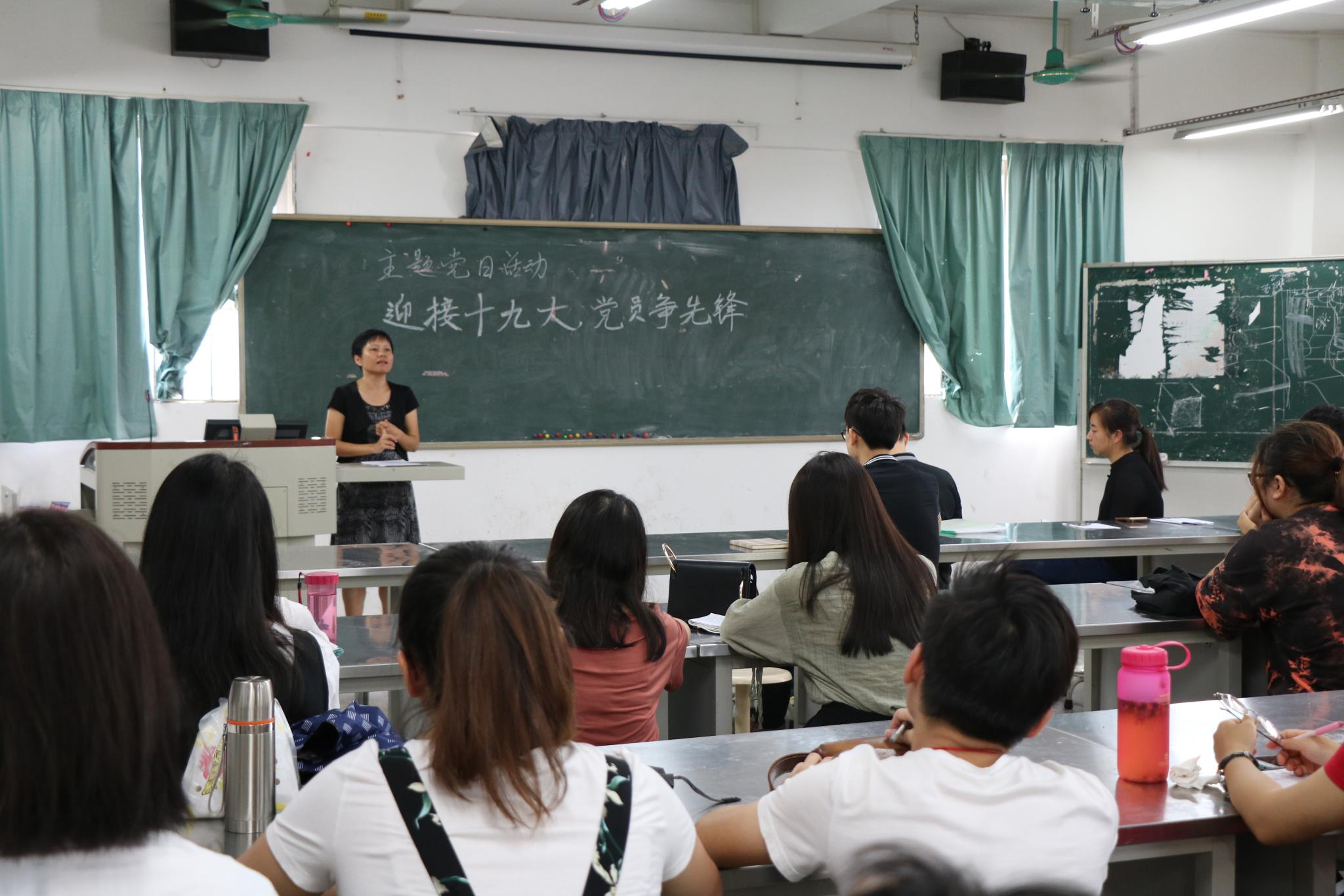 10月12日中午,何香凝艺术设计学院在旧教201室举办主题为“迎接十九大,党员争先锋”的党日教育活动。学院党总支副书记姚荣玉出席活动并讲话。