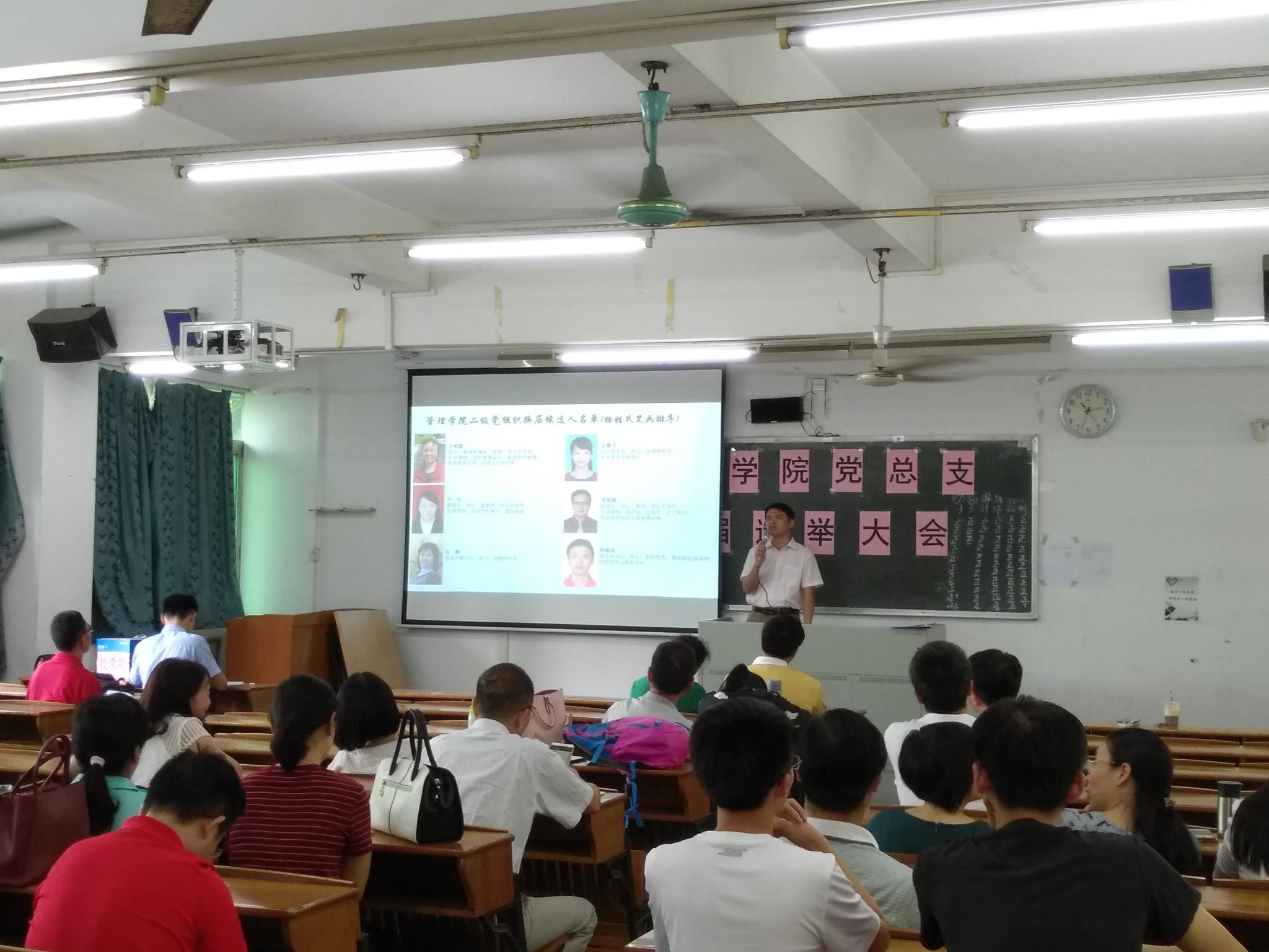 根据学校党委《关于各党总支、直属党支部委员候选人预备人选的批复》意见,管理学院于10月12日下午在海珠校区教学楼208室召开全体党员大会,选举产生了新一届党总支委员。该院师生党员应到正式党员73人,实到60人,到会人数达到应到人数的4/5,会议有效。此次会议由学院第一教工党支部书记秦伟主持。