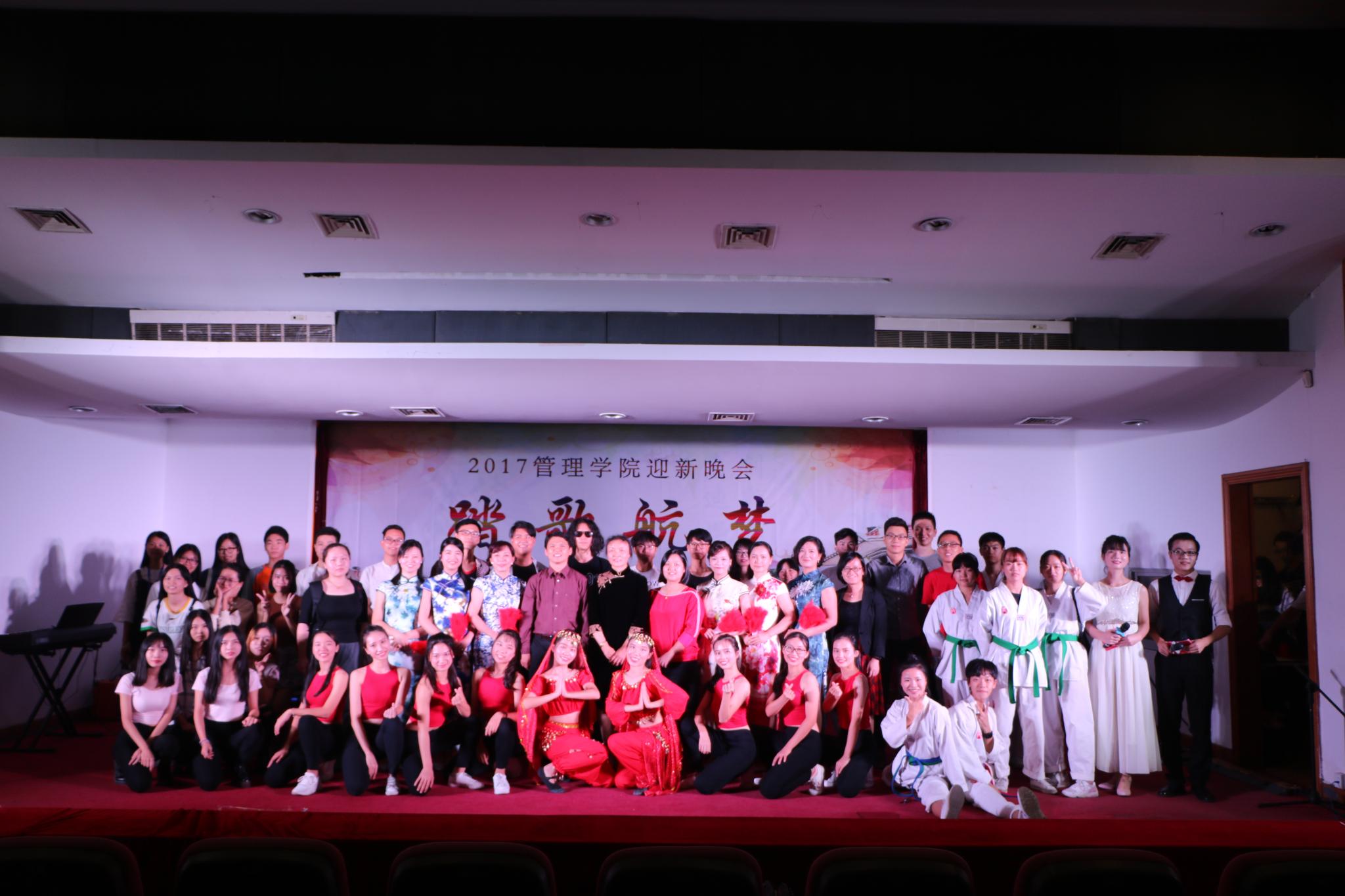 为迎接2017级新生的到来,展现仲园学子的风采,10月29日晚,管理学院以“踏歌航梦”为主题的迎新晚会在学术报告厅顺利开展。学院党总支书记柯锦泉、院长于明霞、副书记江丽、全体学工和专业教师代表、衔环文化公司负责人等嘉宾出席晚会。本场晚会采用视频网站“哔哩哔哩”进行同步直播,校内外师生可通过电脑、手机同步观看晚会。