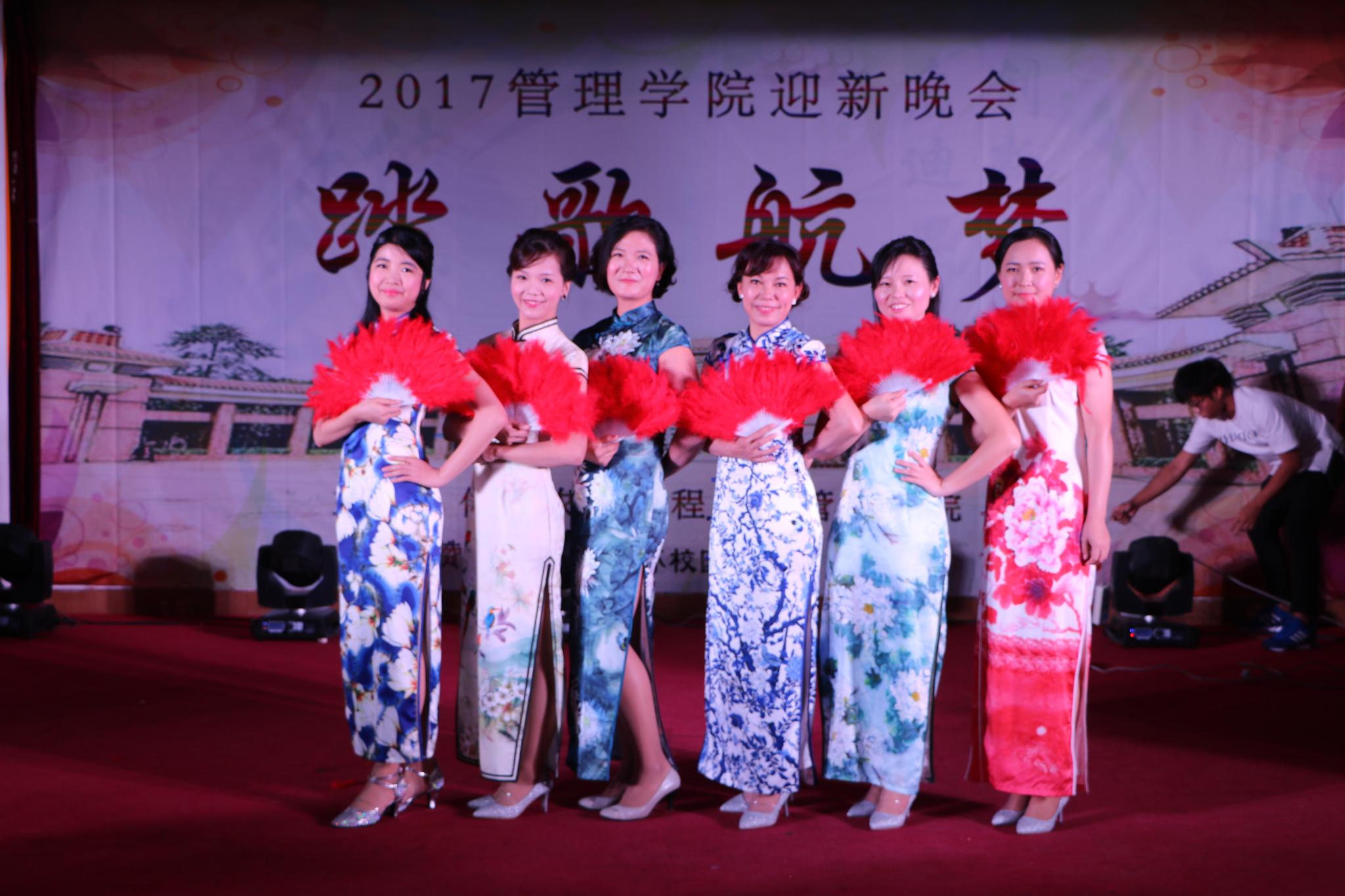 随着强劲的音乐声响起,晚会在学院啦啦队带来的激情开场舞《flash back》中拉开了帷幕。歌舞、拳术表演、乐器联奏等精彩的节目为观众呈现了丰盛的视听盛宴。歌曲《当年情》、《当爱已成往事》、《我总是一个人在练习一个人》引人入胜,由艺术团器乐队演奏的《围城》瞬间点燃全场,吉他手炫酷的摇滚造型、激情强烈的鼓点、主唱动感有力的歌喉都象征着同学们热血的青春。学院舞蹈队表演的印度舞《欢乐地跳吧》、跆拳道协会带来的《跆拳之道》和双节棍协会带来的《棍舞中华》更是让观众热血沸腾。晚会进行到一半后开始了游戏环节《猜歌大比拼》。台上台下的互动十分活跃,现场气氛进入了一个小高潮。随后是粤剧表演《喜登长城》与艺术团器乐队演奏的《大鱼》。学院舞蹈队再次出场,带来了爵士舞《burn break crash》。劲歌热舞,精彩不断。最后由管理学院的六位老师带来的旗袍走秀《似水年华》展现出老师们讲台以外的魅力。台下掌声不断,现场气氛火爆。所有表演结束后,在主持人的讲解下,观众纷纷拿出手机在易班软件上为今晚的节目进行投票,最终老师们的旗袍走秀表演获得了本场晚会的“最受欢迎节目”的荣誉。