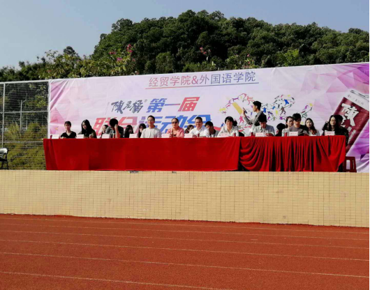 10月29日上午,经贸学院和外国语学院第一届联合运动会在白云校区运动场开幕。经贸学院党总支邓勿书记、外国语学院党总支吴小玲书记、经贸学院党总支许二梅副书记、经贸兼外国语学院辅导员赵栋老师、外国语学院辅导员邓永权老师出席开幕式。