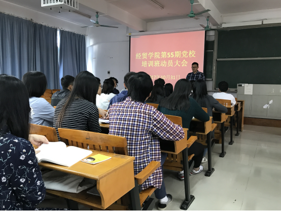 10月31日中午,经贸学院党总支在杨钊杨勋楼306教室召开第55期党校培训班动员大会。辅导员余封亮老师主持会议,各学生党支部支委和全体学员参加。