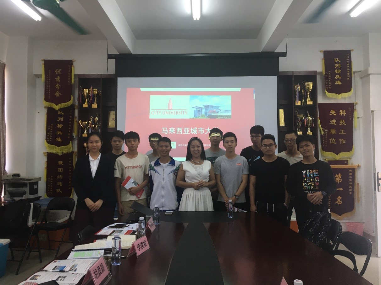 10月29日下午,在白云校区机电工程学院会议室举行了赴马来西亚城市大学读研宣讲会,会议由陈姝副院长主持,邀请了金广国际教育集团相关负责人李建妮、胡晓欣和胡嘉颖进行宣讲,院长丁力行、机械系主任韦鸿钰、能源系主任助理钟天明及有意向赴马读研的同学共同参加了此次宣讲会。