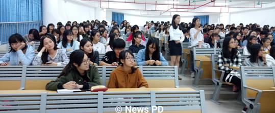 第二位发言的优秀学生代表是张晓欣师姐,她通过讲述招聘单位的招聘要求,向新生们阐明能力决定成就的道理。她更以自身台湾交换生经验告诫新生,要在离开“象牙塔”前,积极实践,充实自己。
