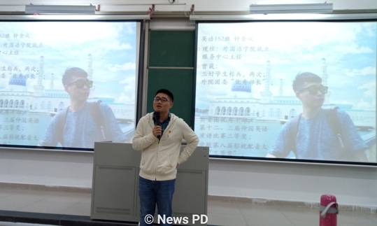 第三位发言的优秀学生代表是钟金成师兄,他为同学总结出四点,分别是自我认知、时间管理、创造能力及感恩的心,并有点到面依次展开,指导17级新生应心怀感恩,方能努力前行。