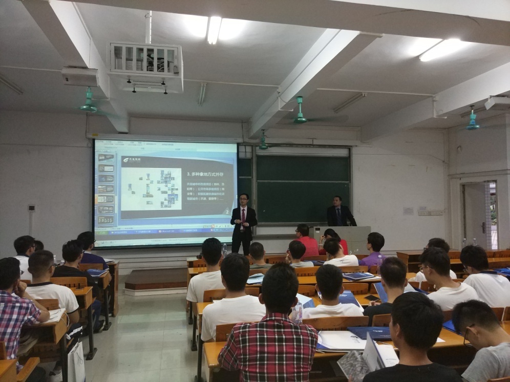 宣讲会伊始,罗经理介绍了公司在广州的某城中村改造的前期工作、业务要求、工作环境,讲叙了“梦想实干派”的实习模式以及公司的发展规划、员工的发展通道、员工选拔程序、培训体系以及薪酬福利等问题。最后还播放了公司的视频简介,详细介绍了企业概况、业务范围、城市更新市场前景、旧城(城中村)改造业绩和企业文化。会上吕建根做了发言,他指出实习是锻炼自身能力、提高专业素质、与建筑行业企业接触的大好机会,对土建类大学生未来的职业发展具有重要的现实意义,毕业班同学有机会实现实习和就业无缝对接,他强调实习的根本目的在提前了解社会、熟悉建筑行业企业,将理论和实践进行有机结合。