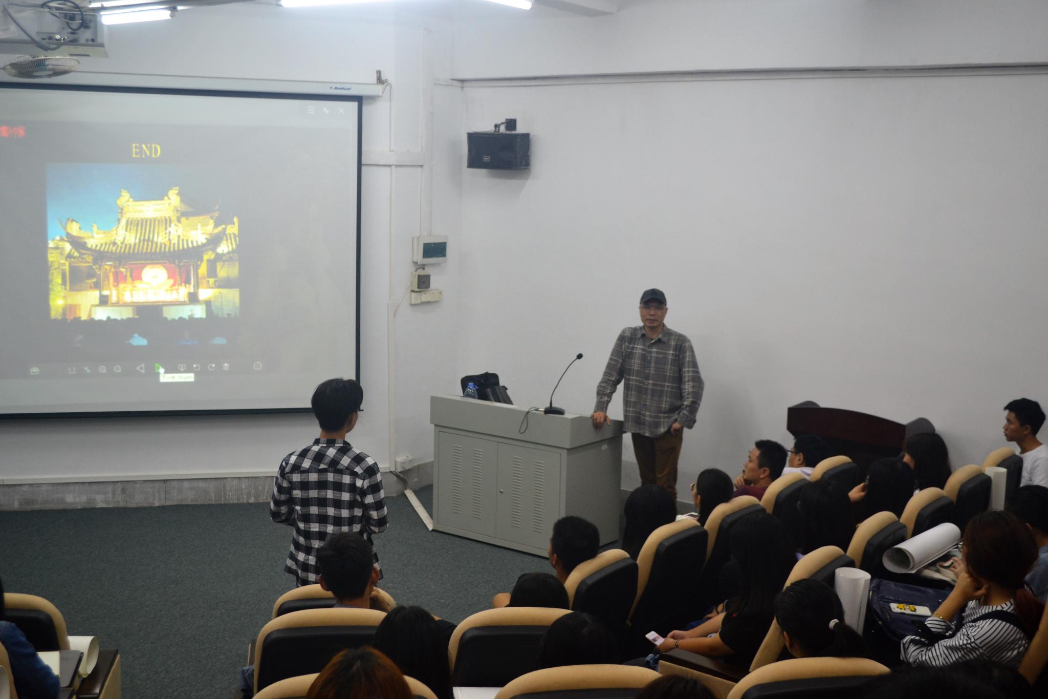 11月9日晚,何香凝艺术设计学院院长李绪洪教授在旧教101多媒体课室作了题为《中国戏剧与戏台建筑艺术设计》的学术讲座,何香凝艺术设计学院环境设计系专业老师和16级学生参加。本次讲座是何香凝艺术设计学院“香凝讲坛”系列讲座第一讲。
