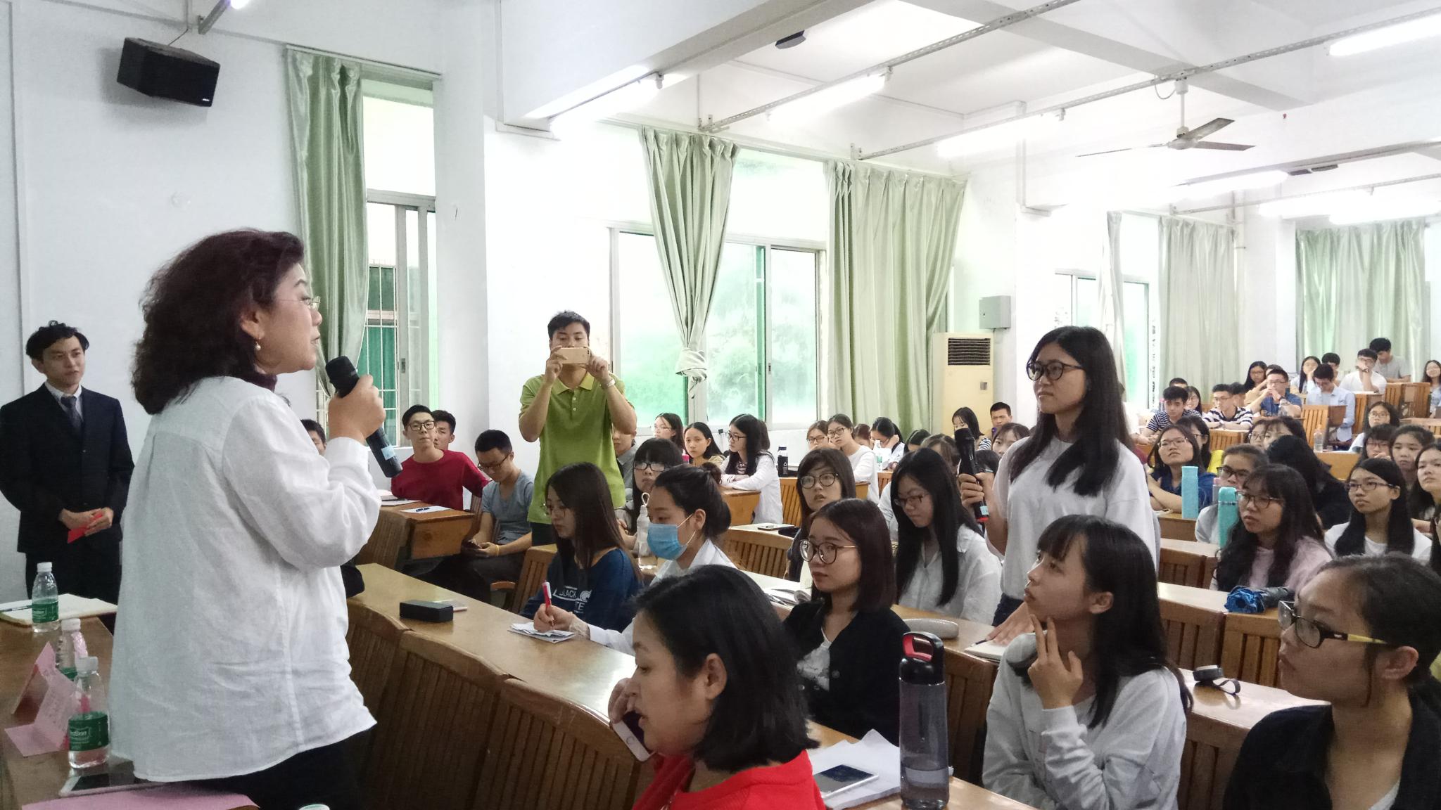 随后,王总监先提问同学们对于未来就业的打算。在了解了同学们的就业意愿后,他向同学们介绍了泽普集团的雏鹰计划,展示了雏鹰计划相关数据,并向同学讲述仲恺校友参与雏鹰计划的情况。接着王总监介绍了实习生工作情况、职业发展的方向等等。最后,进行了问答环节,同学们积极提问,谢总经理也热心并全面地为同学们解答,为同学们解除了一些疑惑。