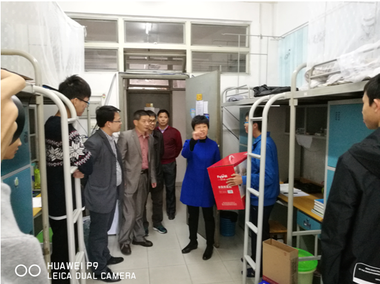 向梅梅一行先后来到F1栋和F2栋特困生所在的宿舍,关切地向学生询问近况,详细了解困难新生的学习和生活等各方面情况,并叮嘱同学们要注意防寒保暖,鼓励困难学生自立自强,克服困难,并希望他们能够专注认真学习,学会坚持,养成好习惯,不要因天气寒冷而懈怠学习。