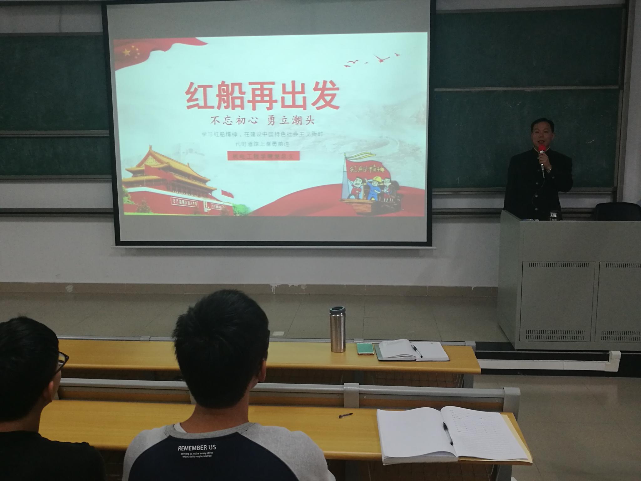 为进一步学习和弘扬“红船精神”,在建设中国特色社会主义新时代的道路上奋勇前进,12月11日下午,党总支书记张平湖在白云校区D310课室给学生党员上了一堂生动的党课。学院党支书副书记何宝国、辅导员刘勇、尹彩霞、学生党员、入党积极分子近200人参加党课学习。