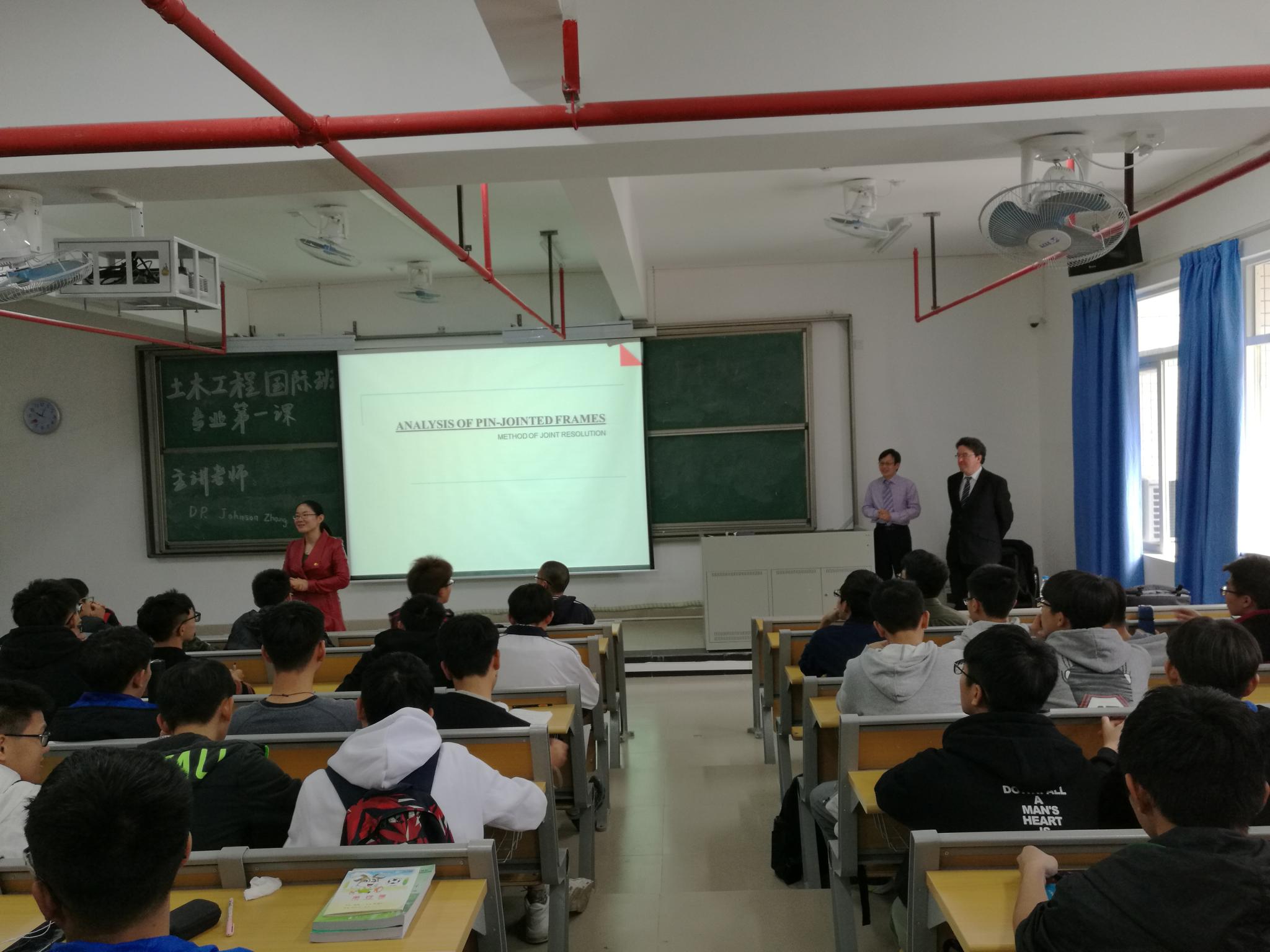 当天上午和下午,Murray MacCallum教授、Johnson Zhang博士在白云校区给我校土木工程专业(含国际班)学生分别开展了学术讲座。这是自今年10月土木国际班开课以来,爱丁堡龙比亚大学工程与建筑环境学院教师第二次来给学生做全英教学。