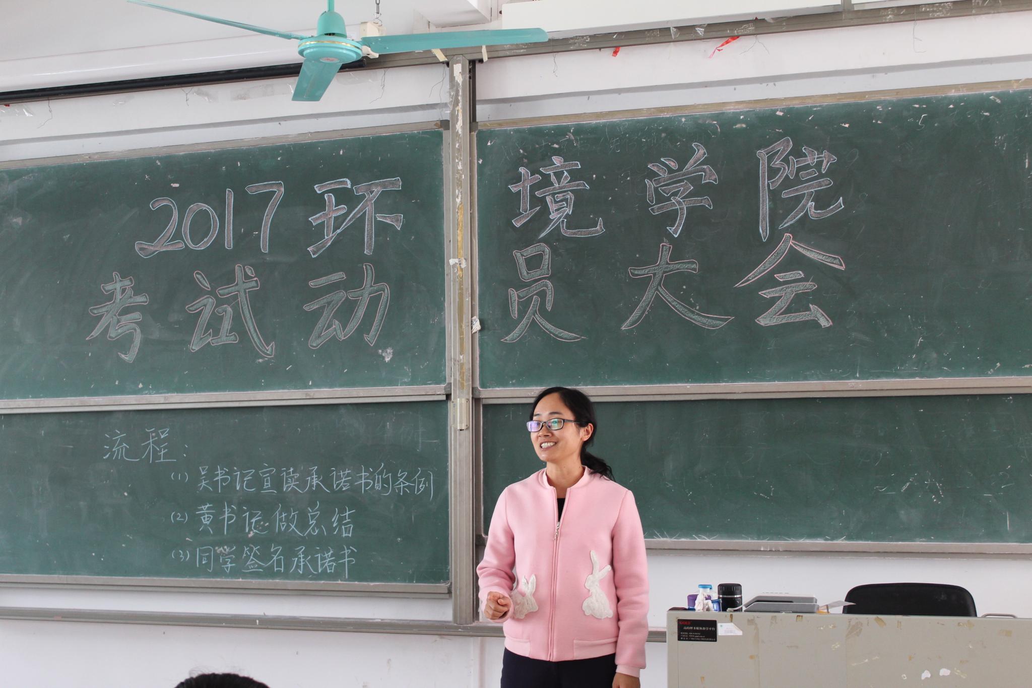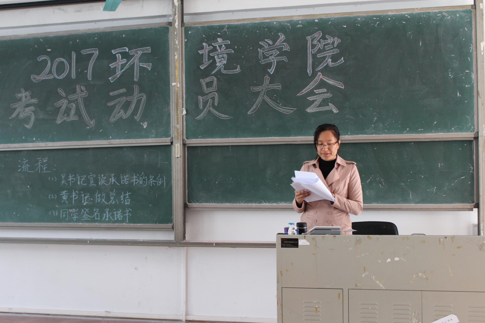 会上,吴燕丽副书记宣读该院《诚信考试承诺书》的相关条例,强调了考风考纪的具体要求,详细列举各种可能的作弊行为和处分情况,强调学院会严格执行学校管理制度要求。