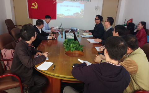 会议开始,朱立学以党课的形式,带领党员们学习十九大新修定《党章》,并从习近平新时代中国特色社会主义思想、中国特色社会主义文化自信、实现中华民族伟大复兴的中国梦、全面从严治党这四个方面进行解读,详细阐述了新党章的十项增加内容与意义。接下来,他引领大家认真学习新时代中国特色社会主义思想、中国特色社会主义文化、实现中华民族的伟大复兴的中国梦、我国社会主要矛盾转化、供给侧结构性改革“绿水青山就是金山银山”、人类命运共同体一带一路、全面从严治党四个意识、党是领导一切的以及实现巡视全覆盖推进两学一做等新党章的内容。会议中,他指出:本次集中学习党章是对十九大精神的再学习再推进,是加强党的建设的一项基础性工作,也是应尽义务和庄严责任。明确学习贯彻党章是共产党员的第一要求,同志们要起到先锋带头的作用,要往深里走、要往实里抓。进一步明确做合格共产党党员的标准,更好地尊崇、敬畏和遵守党章,不断砥砺信仰信念、锤炼党性修养。他强调,党章的丰富和完善,始终体现出我们党与时俱进和不断自我提升的本质,作为中国共产党的一员,必须拥有和党一样的品质,应当进一步认清与时俱进和自我提升的重要性,树立创新意识,自觉学习党章、遵守党章、贯彻党章、维护党章,不断完善和提升自身素质和能力。