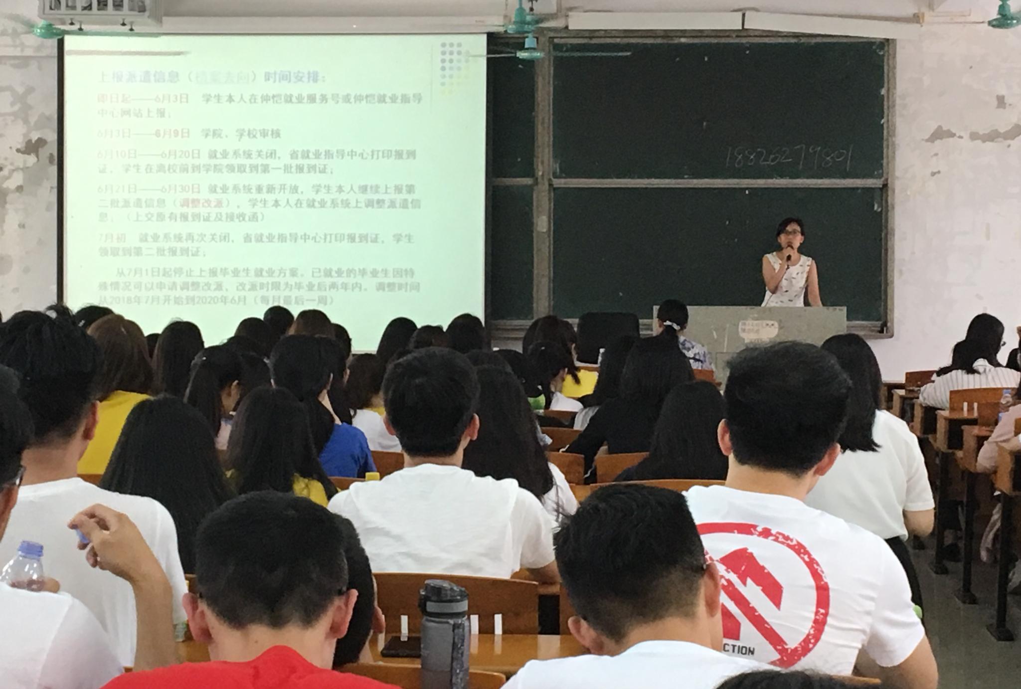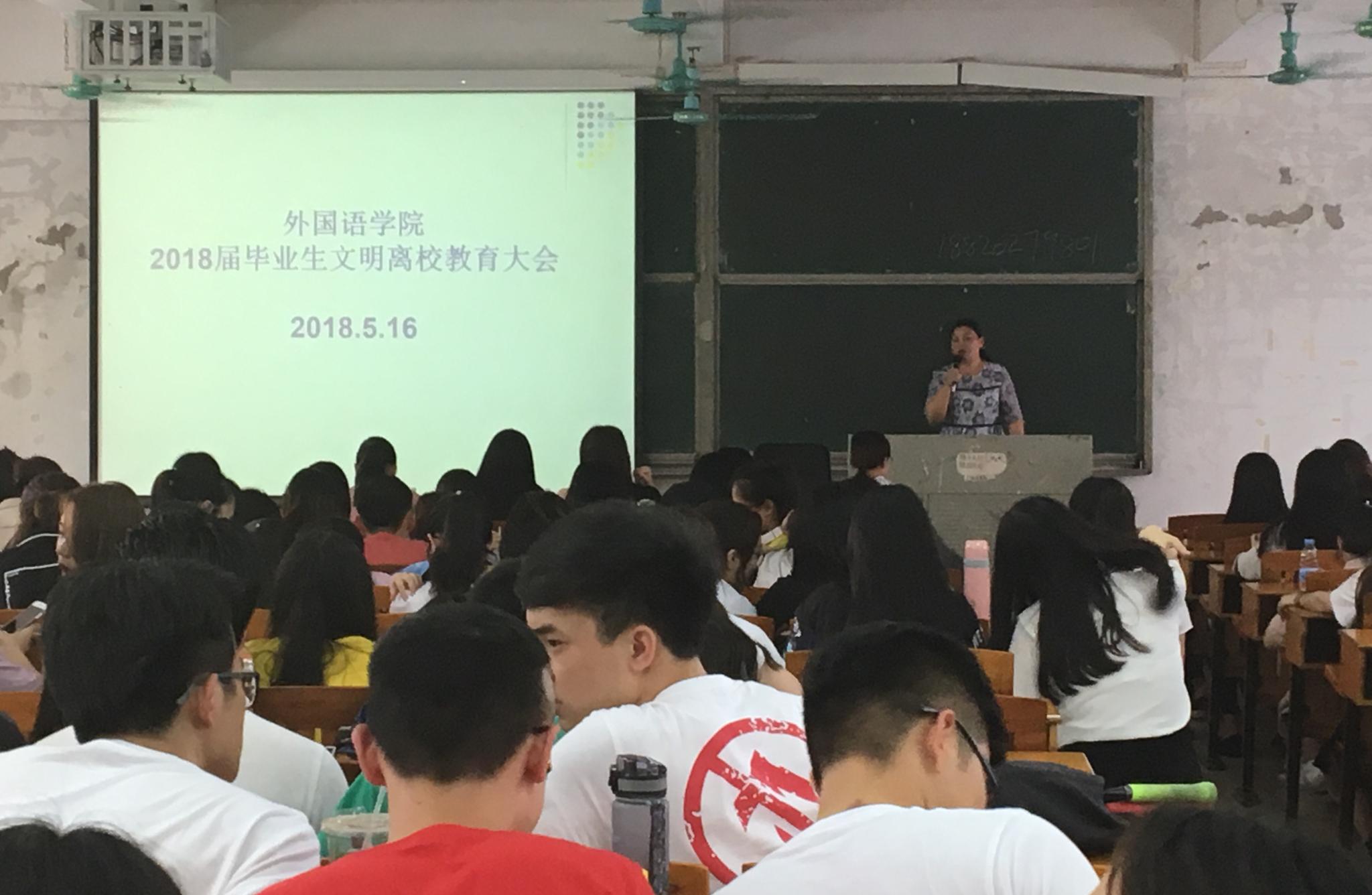 5月16日下午,外国语学院于杨钊杨勋楼210室召开2018届毕业生档案派遣分析会暨文明离校教育大会。外国语学院党总支副书记柴明勤、辅导员李静出席此次大会,参加本次会议的还有外国语学院2018届毕业生。
