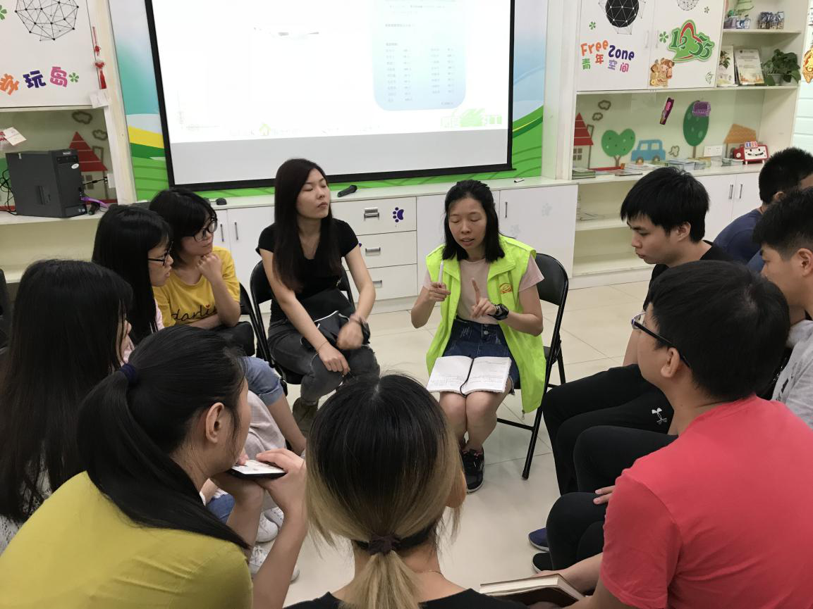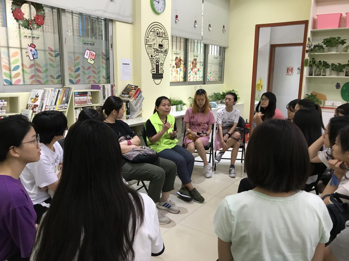 青年地带棠下社工站的社工们对同学们的到来表示了热烈的欢迎。他们先带领大家参观他们的活动场地,了解他们机构各功能室的使用情况。随后,他们详细介绍了该社工站的远景使命、长远规划以及常规服务和特色服务开展情况等。