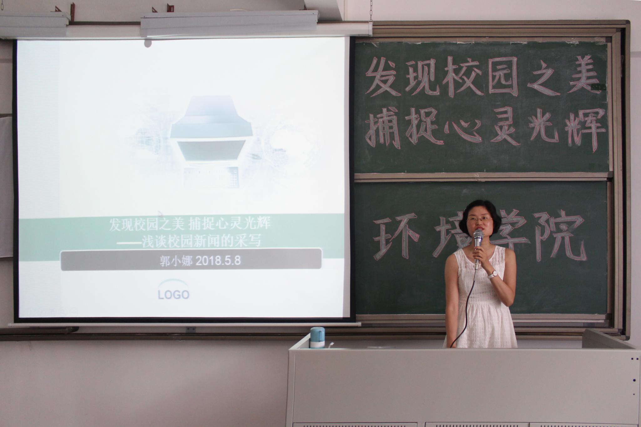 5月24日下午,应环境科学与工程学院党总支邀请,校报编辑部主任郭小娜老师在白云校区D栋综合楼307室开展“发现校园之美,捕捉心灵之美——浅谈校园新闻采写”讲座。
