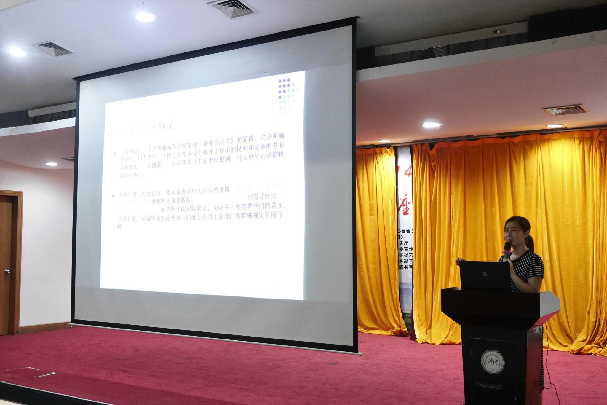 会议首先由池月老师就毕业派遣、就业信息填报等相关工作进行了讲解,让毕业生了解报到证、档案等内容的重要性,解答学生在填报相关信息中遇到的问题。同时对于在校申请了助学贷款的同学,强调要诚信还款,并签署诚信还款承诺书。