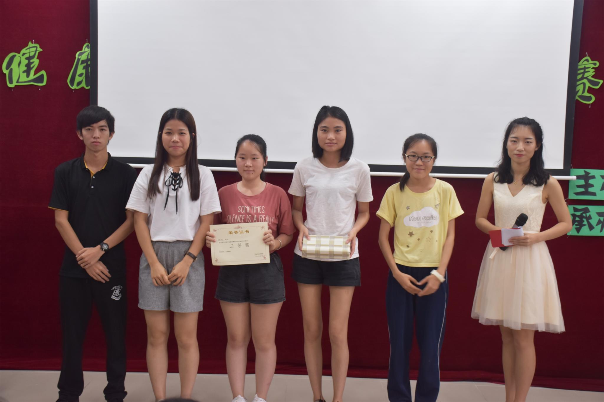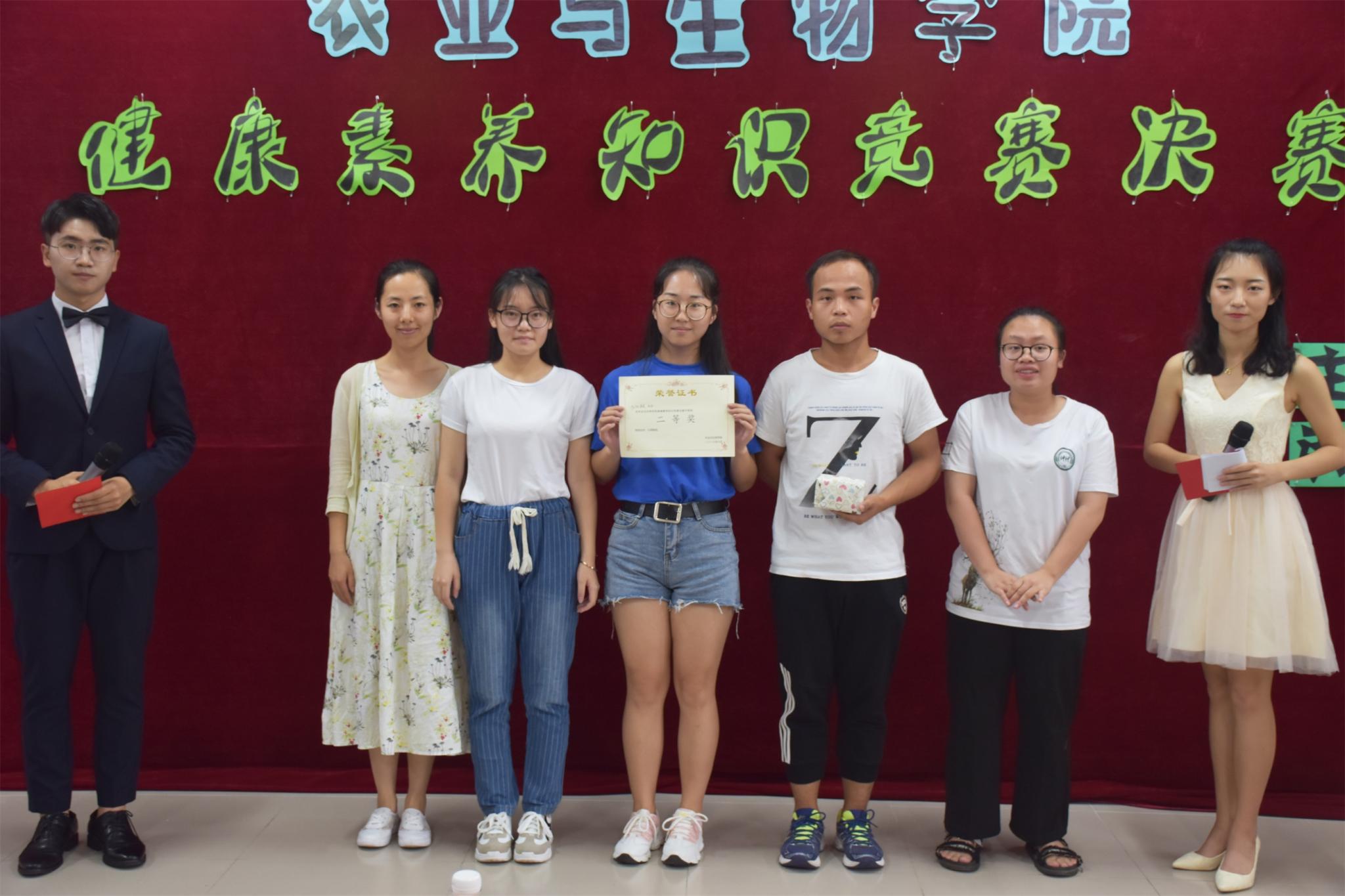 为普及健康知识,培养同学们的健康意识,6月13日下午,由校医院主办、农业与生物学院承办的第八届健康素养知识竞赛于综合楼507室举行。经过激烈角逐,2509小队脱颖而出,荣获本次比赛一等奖,蓝调小队获得了二等奖,非同艺般小队获得了三等奖。最佳人气奖由蓝调小队一并获得。出席本次比赛的嘉宾有校医院孙明璐医生,农业与生物学院团委副书记周静静老师及各院系学生代表。