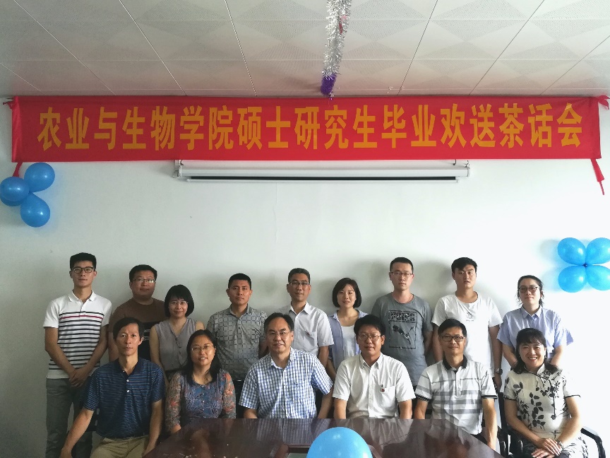 6月16日下午,农业与生物学院在海珠校区科学楼602室举行硕士研究生毕业欢送茶话会。本次欢送茶话会主题为“畅聊仲园学习之情,共筑师生农生之梦”。研究生党总支书记周遗品、研究生处副处长肖文清、辅导员王凯欣,农业与生物学院全体领导班子成员,农业与生物学院2018年上半年硕士毕业生导师代表和全体硕士研究生毕业生及在校硕士研究生代表参加本次茶话会。茶话会由农业与生物学院党总支副书记周超雄主持。