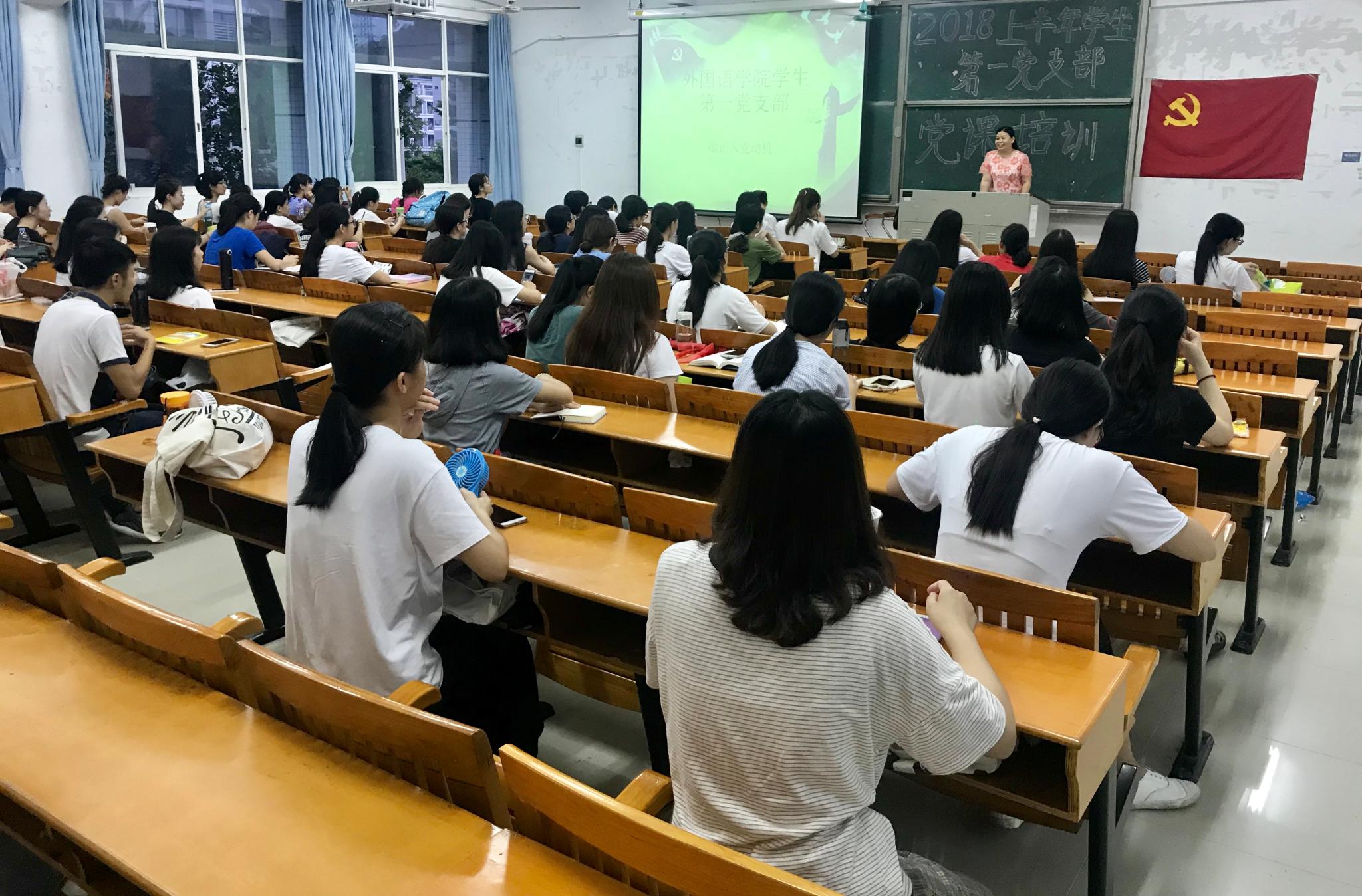 6月21日晚,外国语学院于杨钊杨勋楼209室开展以“端正入党动机”为主题的党课培训。本次党课由该院党总支副书记柴明勤主讲,该院学生第一党支部副书记周丽媛主持。学生第一党支部全体成员及2016、2017级全体入党积极分子到场聆听。