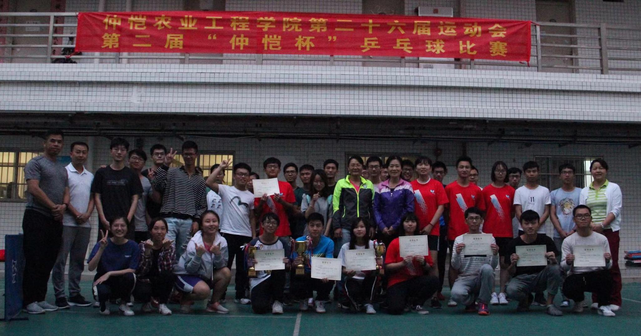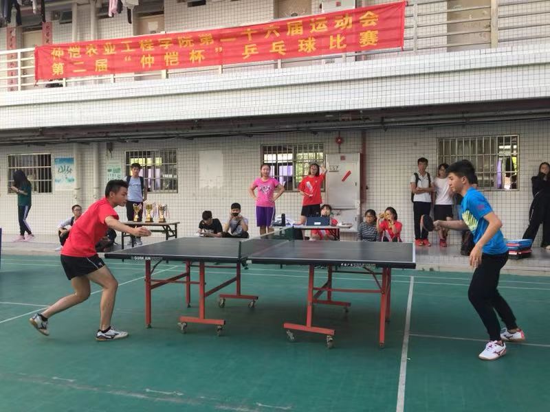 10月27日至29日,第二十六届校运会乒乓项目——第二届“仲恺杯”乒乓球赛在白云校区举行,该比赛由海珠校区和白云校区共16个院系参加。比赛采用第一轮分组循环积分赛,第二轮淘汰赛的方式,经过两天半的激烈角逐决出了前八名,分别是第一名农业与生物学院、第二名动物科技学院、第三名信息科学与技术学院、第四名经贸学院、第五名环境工程与科学学院、第六名城乡建设学院、第七名园艺园林学院、第八名管理学院。比赛成绩前八名将以积分的形式统计到校运会比赛项目总分中。