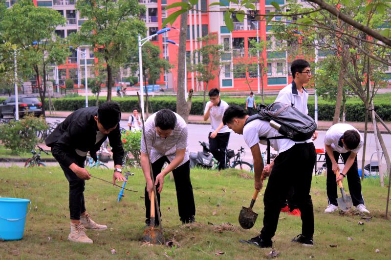 为发挥党员的模范带头作用,增强同学们的责任感和使命感,号召更多的人投入到保护自然的行列中。4月29日,环境科学与工程学院(以下简称环境学院)在白云校区学生公寓7栋宿舍楼旁草坪开展学生党员植树活动。出席本次活动的有环境学院党总支黄礼彬书记、吴燕丽副书记、辅导员蔡晓力老师,环境学院学生党员参与本次植树活动。