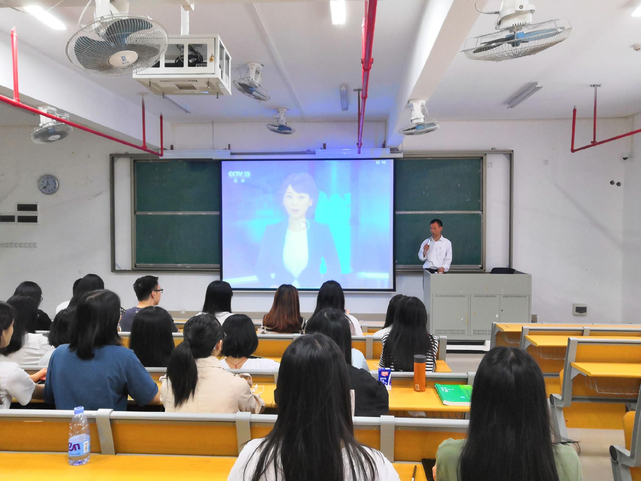 4月30日上午10点,计算科学学院组织学生在D210室收看纪念五四爱国运动100周年大会直播,一同观看的师生有党总支书记刘伟坚老师、辅导员徐盼老师,以及学生党员、预备党员、发展对象、团员干部等。