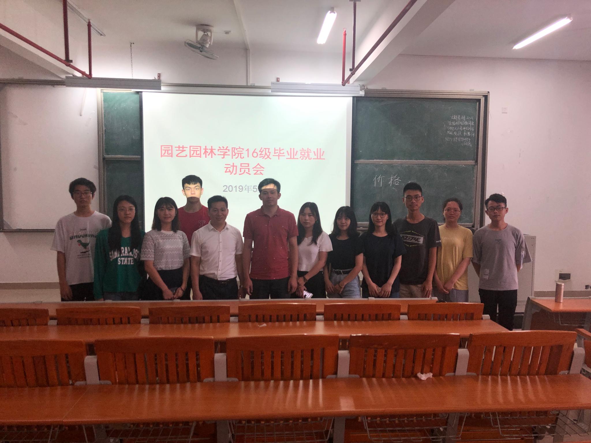 5月30日,园艺园林学院于白云校区D栋综合楼607室举行2016级毕业就业动员大会。此次会议的主讲人是刘义存老师,出席此次会议的有园艺园林学院辅导员邓茂鑫老师以及园艺园林学院2016级学生。