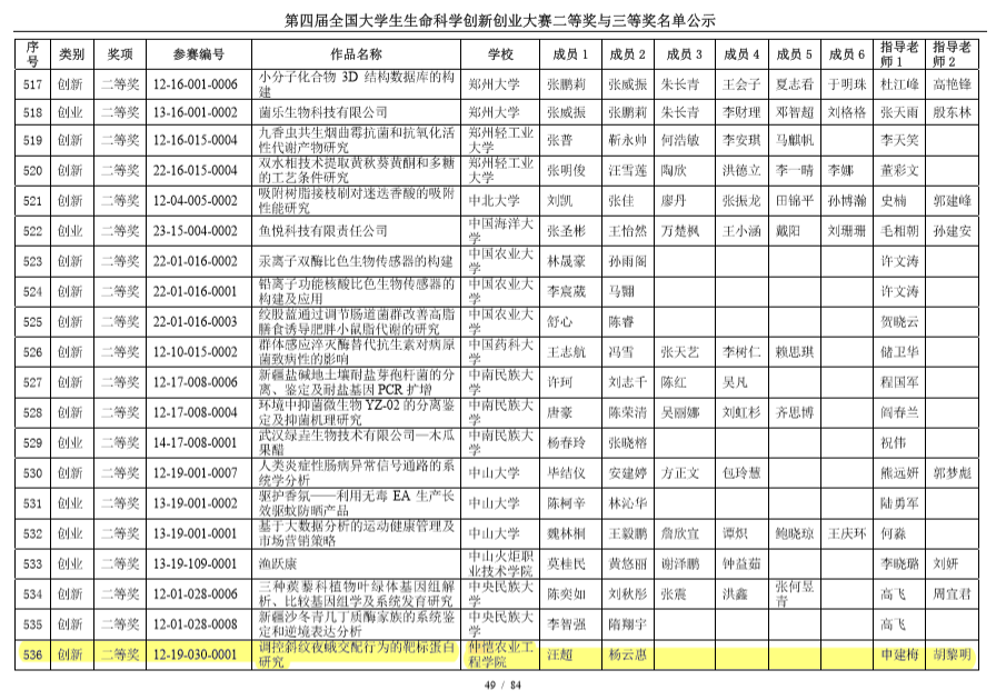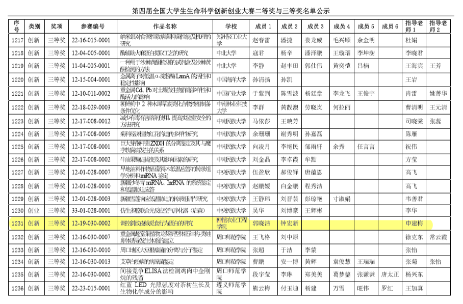 近日,第四届全国大学生生命科学创新创业大赛入围公开决赛、二等奖与三等奖名单公示出炉。其中,由农业与生物学院汪超、杨云惠负责的作品《调控斜纹夜蛾交配行为的靶标蛋白研究》(指导老师:申建梅、胡黎明)获得了二等奖,由郭晓洁、钟宏新负责的作品《调控斜纹夜蛾觅食行为蛋白的研究》(指导老师:申建梅)获得了三等奖。