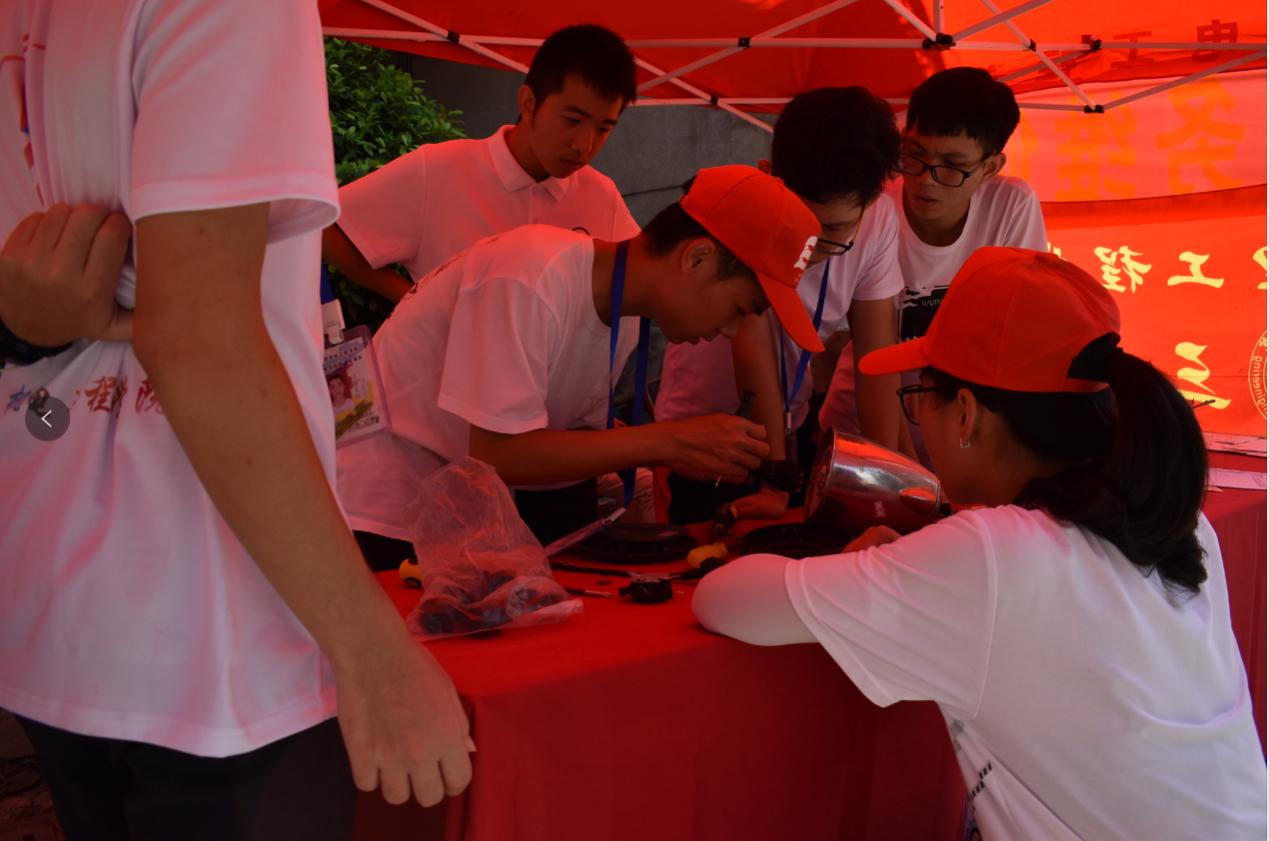 7月23日,“三下乡”团队在石角镇的重要任务之一,就是为当地开展家电义务维修活动。队员们顶着烈日,冒着大雨,克服天气多变等各种困难,利用专业特长和技能,将理论与实践相结合,全身心的投入到问题电器的修理中,并成功的完成了对大多数问题电器的修理工作。此次义务维修活动共收到村民们送来的损坏家电共54件,有电饭煲,电风扇,电热水壶、豆浆机等,义修组队员们成功修理好35件,成功率65%,石角镇村民对同学们的维修能力给予了高度评价。