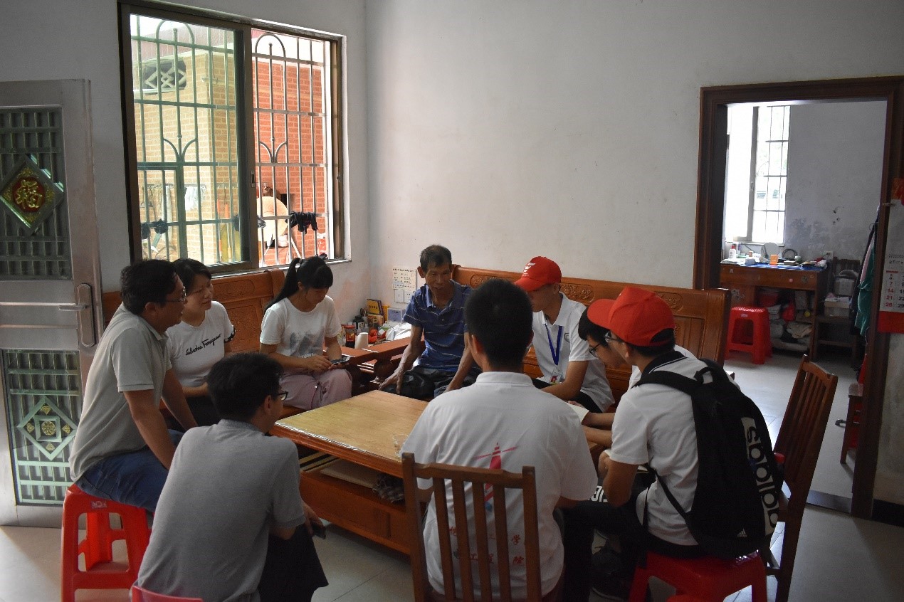 7月21日至22日调研组以调研访谈、分发调查问卷的形式对村委干部以及村民们进行关于精准扶贫政策、环境保护的普及。调研1组前往里水片区党群服务中心入户采访了低保户、一般贫困户、特困户共三类贫困户代表。通过采访,队员们充分了解到当地扶贫工作的开展进程、扶贫对象的满意程度以及扶贫工作取得的良好成效。调研2组则深入田间采访村民,了解到近些年来村里的垃圾处理以及农药化肥使用的情况,村民们主动向队员们说明情况。在调研过程中,队员遇到村民们正在干农活,队员们主动为他们提供了帮助。经过同学们的努力,本次调研活动共完成了200余份调查问卷。