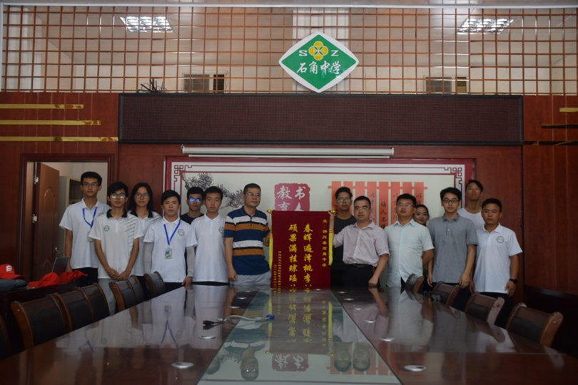 7月25日,何宝国副书记来到石角中学看望大家,并召开了本次三下乡总结会议。会上,何书记对大家这几天的社会实践成果和团队协作精神表示了肯定。他希望大家能够谨记校训“注重实践,扶助农工”的要求,作为仲恺人要积极投身到基层,为乡村振兴做出自己应有的贡献。最后何书记代表学院向石角中学赠送锦旗,感谢石角中学为我院本次“三下乡”实践队提供良好的食宿条件。