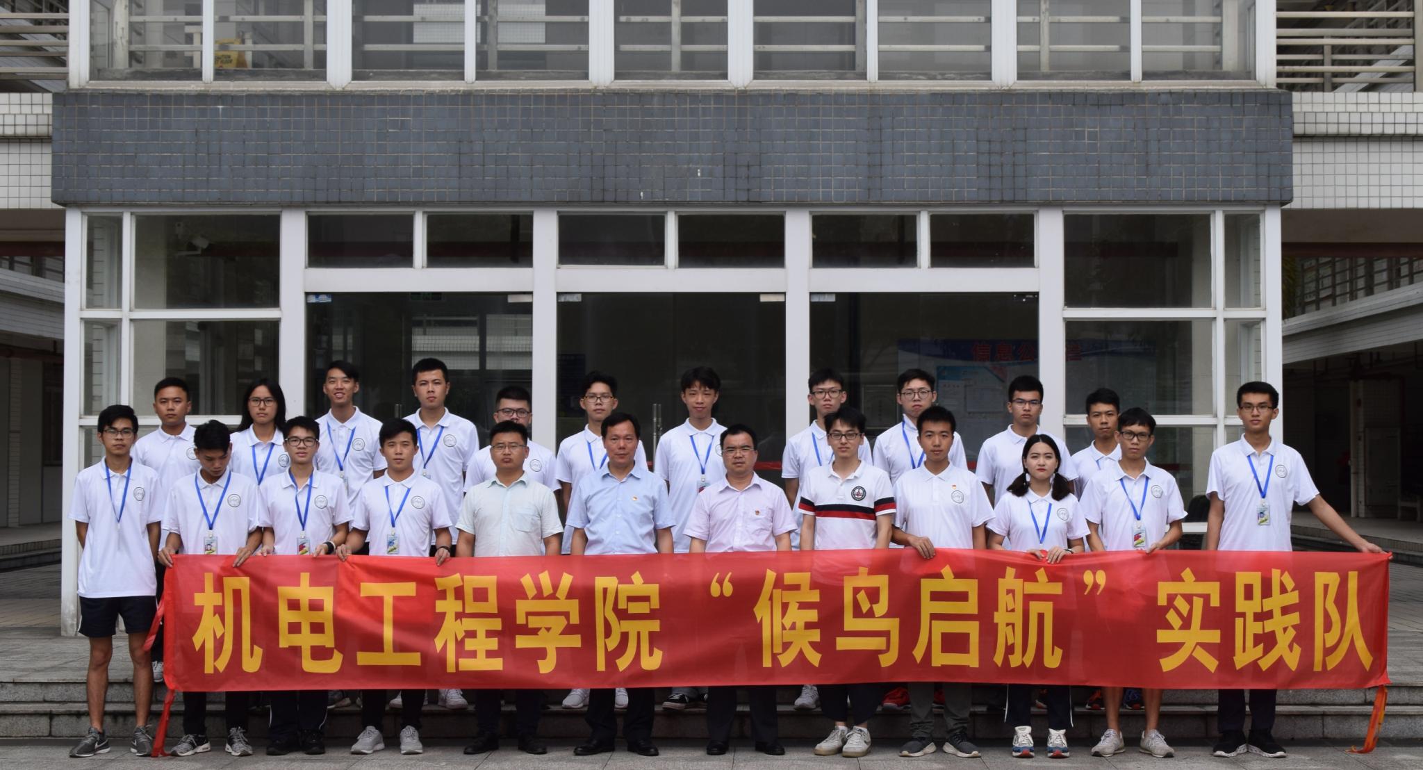 为深入学习贯彻习近平新时代中国特色社会主义思想和党的十九大精神,积极响应共青团中央关于全国大学生暑期“三下乡”社会实践活动的号召,落实广东青年投身乡村振兴战略行动和“灯塔工程”——广东青年大学生思想引领行动,7月20日至7月25日,机电工程学院“候鸟启航”三下乡服务实践队前往清远市佛冈县石角镇开展为期六天的三下乡社会实践活动。学院党总支书记张平湖、副书记何宝国出席实践队出发前的准备会议。张书记在队员们出发前勉励同学们争当实践先锋,并提醒大家在活动过程中注意安全。本次暑期“三下乡”活动内容包括主题调研、政策宣讲、义务维修、瞻仰烈士陵园、环保科普、志愿者服务等。为期六天的活动得到了当地镇政府、村委以及村民的支持和欢迎。