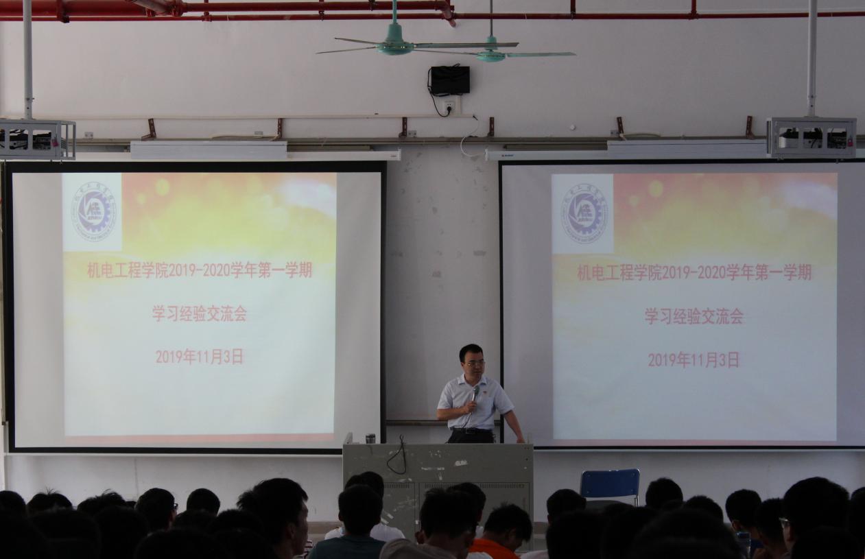 为提高2019级新生学习积极性,帮助他们更好地适应大学生活,11月3日下午,机电工程学院于在白云校区D2礼堂召开2019-2020学年第一学期学习经验交流会。党总支副书记、院长丁力行、党总支副书记何宝国,辅导员熊伟出席本次会议,优秀学生代表徐政凯、蔡世杰、余昱欣、黄惠纯以及2019级全体学生参加本次会议。会议由何宝国主持。