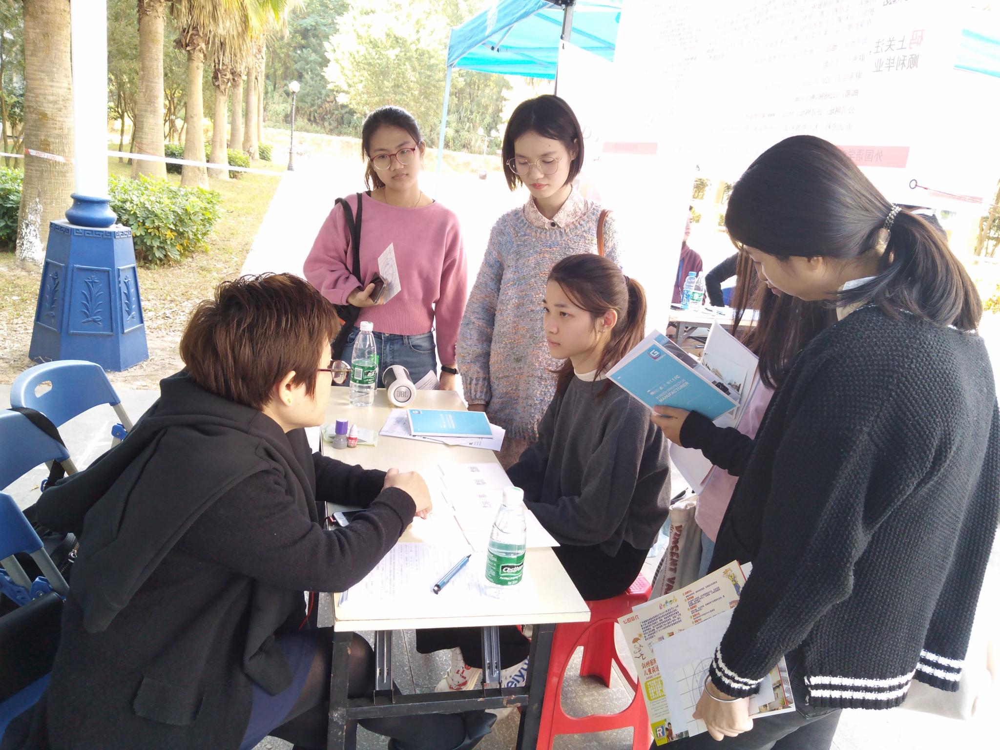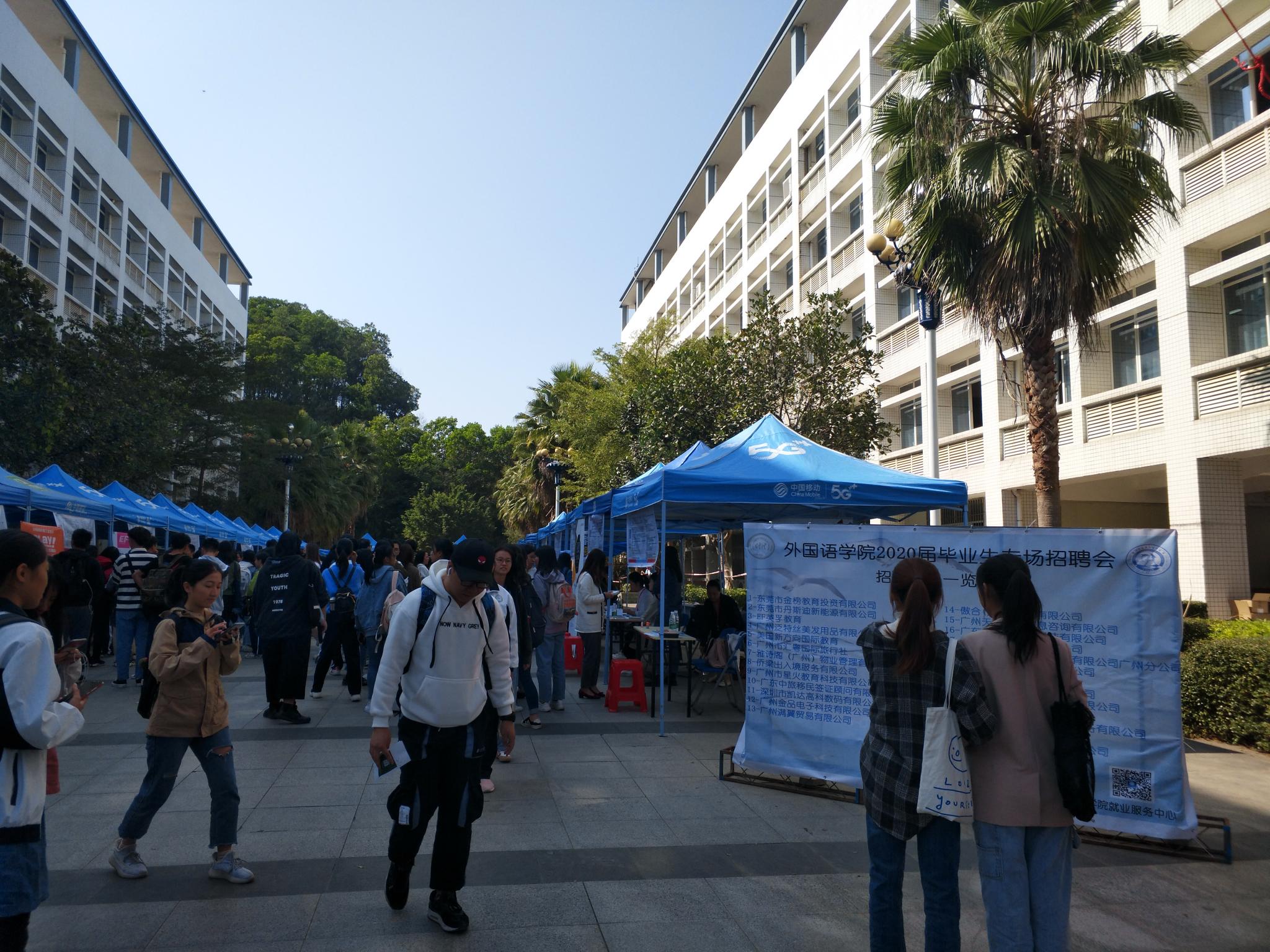 为促进我校毕业生多渠道就业创业,实现更高质量的就业目标,11月20日上午,外国语学院2020届毕业生专场招聘会于曾楼与杨楼之间的空地举办。26家招聘单位参加本次招聘会,到场嘉宾有外国语学院党总支书记吴小玲,外国语学院院长李磊,党总支副书记柴明勤,学生处徐盼、辅导员周静、邓永权、陈韵。外国语学院各年级各专业学生积极到招聘会现场了解企业信息。